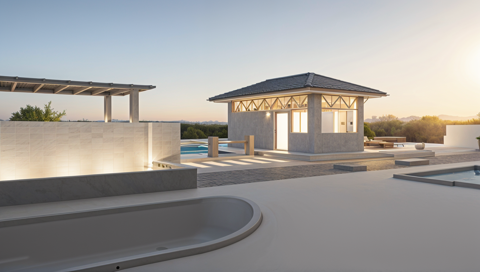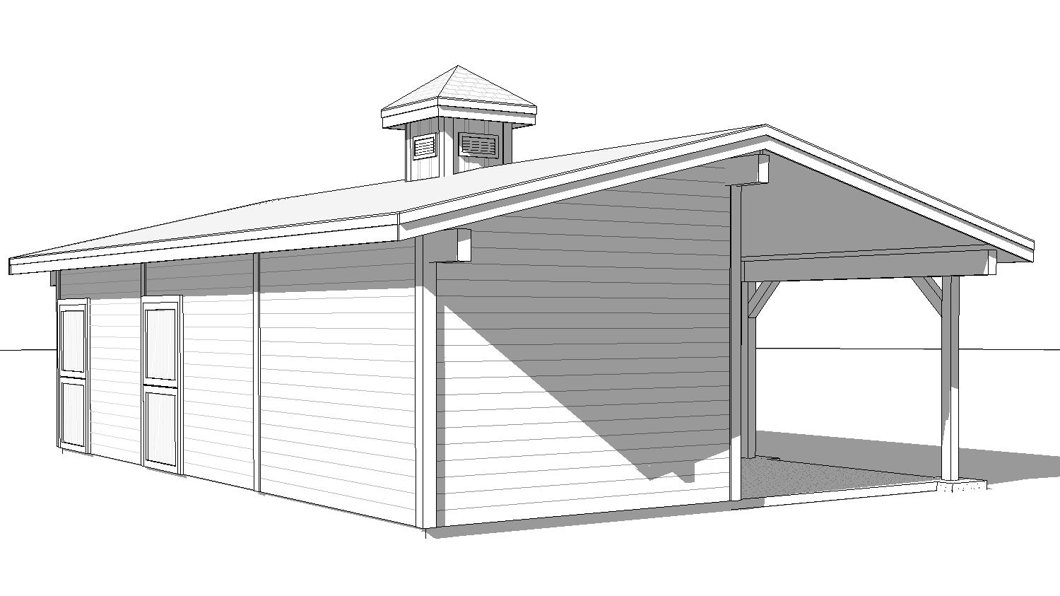clean timber clad architectural exterior rendered in cinematic bright golden hour lighting equestrian stables with wood and metal stall fronts warm horizontal cedar tongue groove wood siding with minimal grain pattern grass foreground black standing seam metal roof visible prominent cinematic hills and trees landscape in the background natural wood textures high fidelity photorealistic visualization crisp shadow falloff refined facade geometry richly detailed grain patterns soft atmospheric depth premium architectural photography mood ultra clean composition and materials
