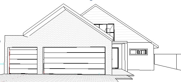 this house has a grey facebrick pop out around the garage charcoal trimdeck roof sheeting wood and glass front door with a sectional double and single garage door the overhang of the roof above the garage on the front should be a bit less