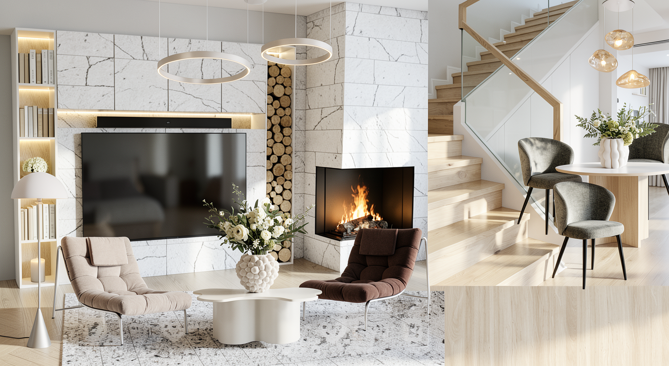 use white stone and light oak