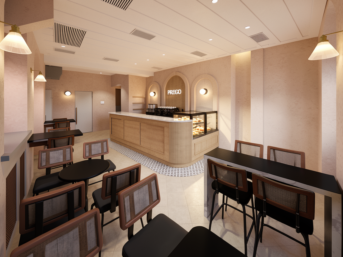 create a photorealistic architectural visualization from the provided base image of a retail kiosk the geometry proportions and shape of the kiosk must remain strictly identical to the reference image do not modify redesign simplify or reinterpret the structure only add materials lighting environment people and products environment place the kiosk inside a modern european shopping mall interior inspired by aupark environment characteristics contemporary shopping mall atrium polished stone or terrazzo floor glass railings and shopfronts in the background neutral interior tones white light grey beige diffused daylight from skylights combined with soft mall lighting the environment should look realistic but not overcrowded material specification critical the kiosk should be visually unified in one yellow color palette but materials must be strictly separated vertical prisms only these elements only the vertical prism elements of the kiosk are made of wood material stained beech wood appearance yellow stained tone visible natural wood grain matte or satin finish natural wood texture clearly readable important rule wood material must appear only on the vertical prisms all other kiosk surfaces all remaining parts of the kiosk must be made from material colored mdf board valchromat appearance yellow tone matching the stained wood matte finish subtle valchromat fiber texture important rule no wood texture is allowed on these surfaces these surfaces must clearly read as colored mdf panels storage space under the counter under the counter there is a storage space for products exactly as visible in the reference image rules the storage area must remain exactly as in the base image do not change its geometry size or position it should function as a practical storage zone inside the storage area place a small amount of merchandise or packaged craft products neatly arranged but realistic product display the kiosk sells handmade craft products display guidelines minimal amount of products curated selection clean and simple presentation focus should remain on the architecture of the kiosk signage sign material white pvc board installation suspended from thin steel cables appearance minimal and clean lightweight modern sign people add 2 4 people around the kiosk casually dressed shoppers natural relaxed poses possibly one seller behind the counter subtle interaction with the products people help communicate scale and realism lighting lighting should replicate realistic shopping mall conditions soft overhead lighting diffused daylight from skylights natural soft shadows warm neutral color temperature subtle reflections on the floor avoid dramatic cinematic lighting camera architectural photography style eye level camera slight wide angle approx 28 35 mm kiosk clearly visible and dominant in the composition realistic spatial depth rendering style highly photorealistic architectural visualization physically accurate materials realistic reflections and shadows subtle imperfections for realism critical constraints do not modify the kiosk shape do not change proportions do not redesign elements do not remove or modify the storage space wood material only on vertical prisms all other surfaces must be valchromat colored mdf