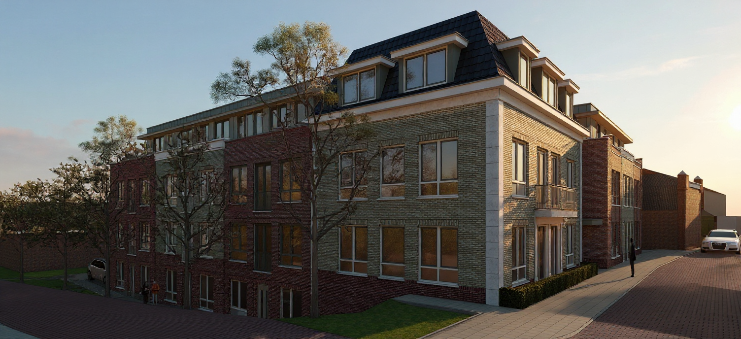 add curtrains behind the windows change trees for oak trees point sun on long facade