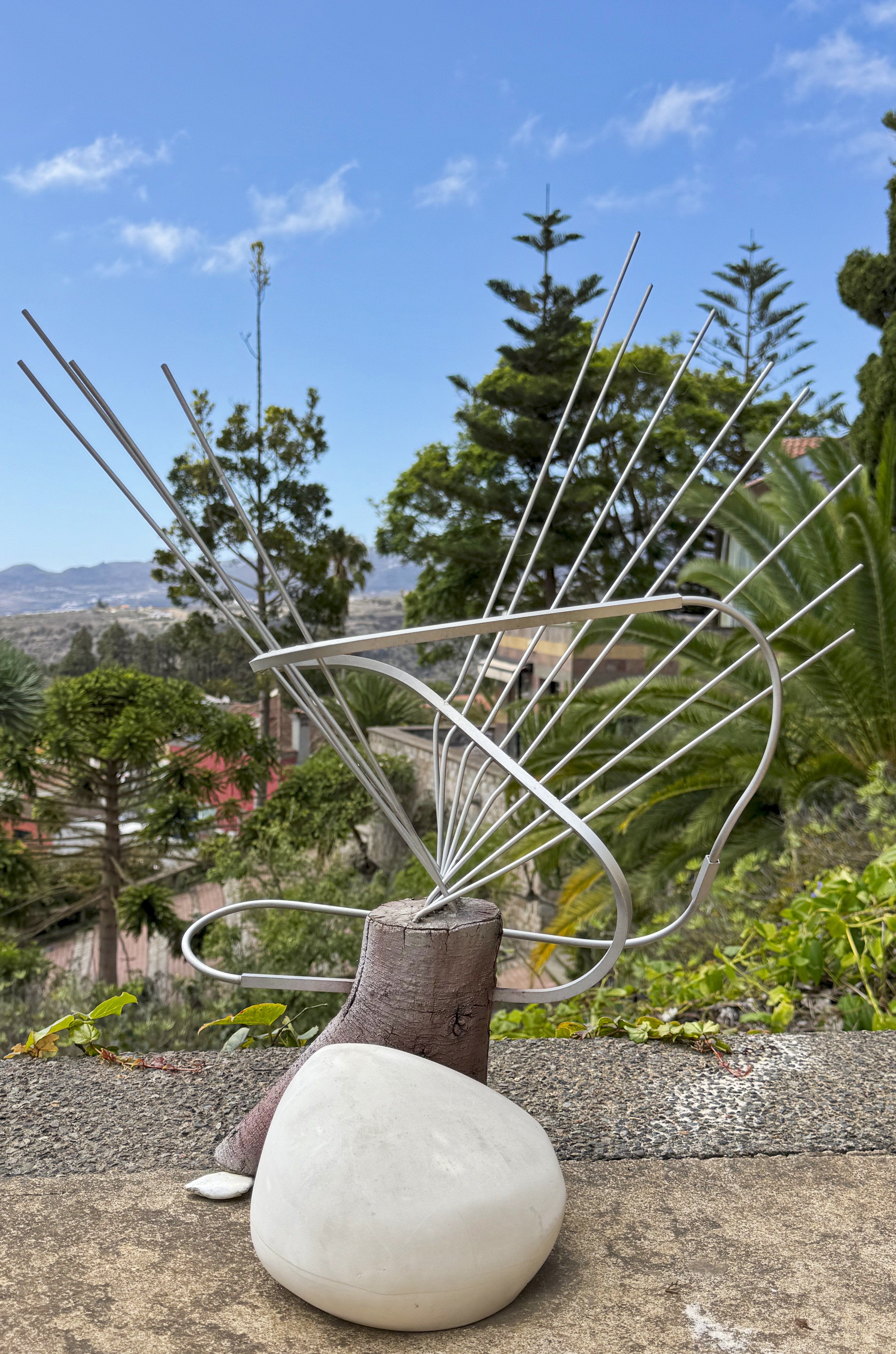 place the sculpture on a pedestal of absolute black marble from south africa and a plaque that says black is black 2026 luis s nchez on a seafront promenade with people strolling and a garden with flowers and grass around the statue