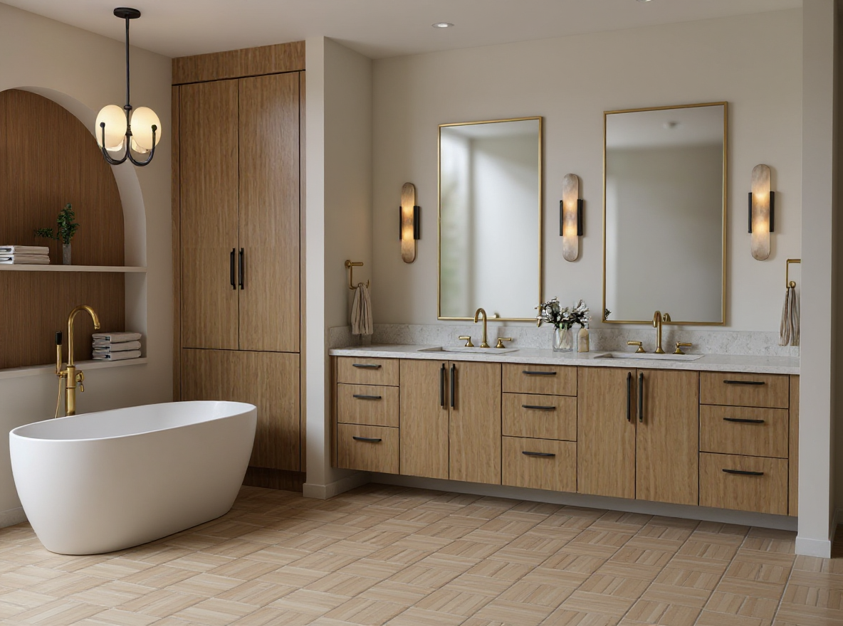 plenish this space lighter wood tone less grain white ceiling hide pergola on 2nd level white ceiling above dining table ceiling crown white too even lighter wood tone refer to this image paint all the wall white put sky outside of second floor windows same strategy apply to this image remove the bottom window infront of stairs plenish kitchen using same strategy add kitchen hood on top of range all upper cabinet at two side of hood tile below wall add upper cabinet at left hand side wall too add upper cabinet at left and right of the kitchen hood marble countertop isalnd with marble waterfall waterfall at short side waterfall at island width