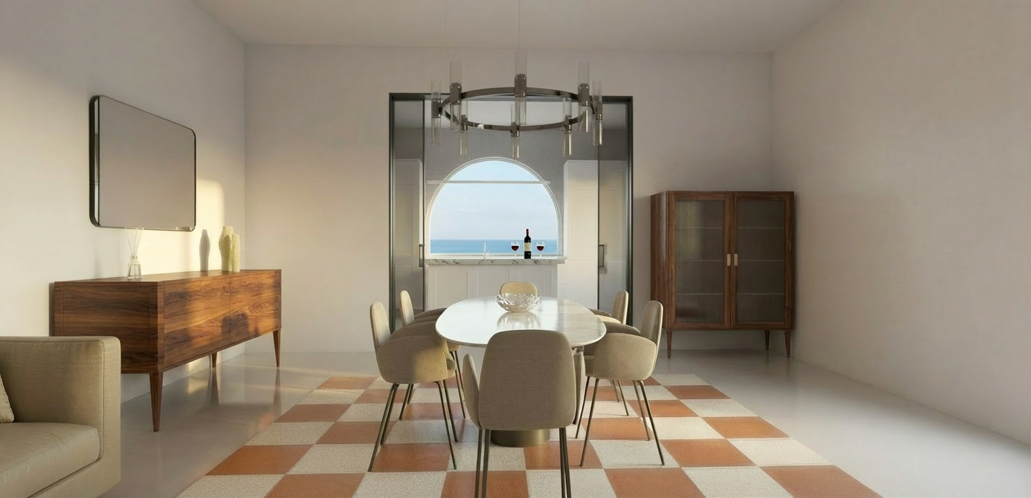 mostra cielo azzurro con nuvole fuori finestra ad arco no mare non modificare nulla