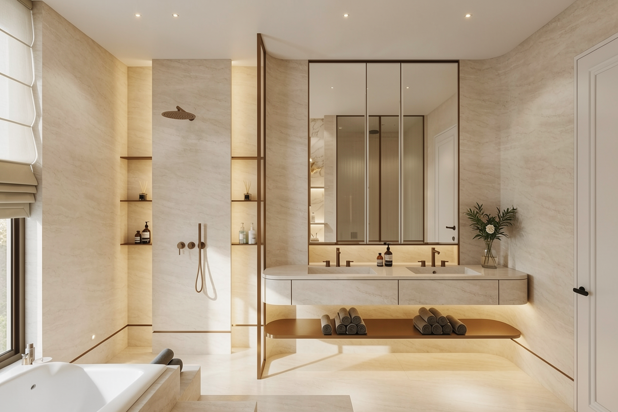 take the existing hotel bar and strip it entirely to its bare structural shell remove all furniture fixtures finishes paint paneling flooring ceiling details and decor keep only the room s walls ceiling floor structure and window and door openings intact preserving exact proportions geometry and architectural openings then renovate the room fully in the modernized old money luxury bar style developed for the previous restaurant scene walls moldings apply warm ivory and cream wall paneling with geometric linear classical moldings and subtle gold trim retain restrained neoclassical proportion cues no floral organic or rounded motifs ceilings add high coffered ceiling details in a restrained classical style consistent with the wall paneling and the established restaurant style flooring install high gloss geometric black and cream marble with polished brass inlays strictly diagonal lines and rectangular intersections veining and reflections should convey rich materiality and luxury bar counter stage a single modernized old money bar counter in dark polished wood with brass detailing as the only furniture element no chairs tables or other furniture anywhere else windows doors preserve all windows and doors exactly as they are do not add curtains drapes or alter openings in any way atmosphere rendering the room should read as a dark intimate cinematic hotel bar maintaining the luxurious restrained modernized old money aesthetic from the previous scenes render ultra photorealistically with corrected perspective straightened verticals and horizontals and detailed textures overall goal create a fully stripped and professionally renovated bar shell finished entirely in the luxury design style we have built geometric floors refined paneling coffered ceilings and a single modernized old money bar counter no additional furniture props drapes lights or objects are added the original room layout and openings are preserved exactly