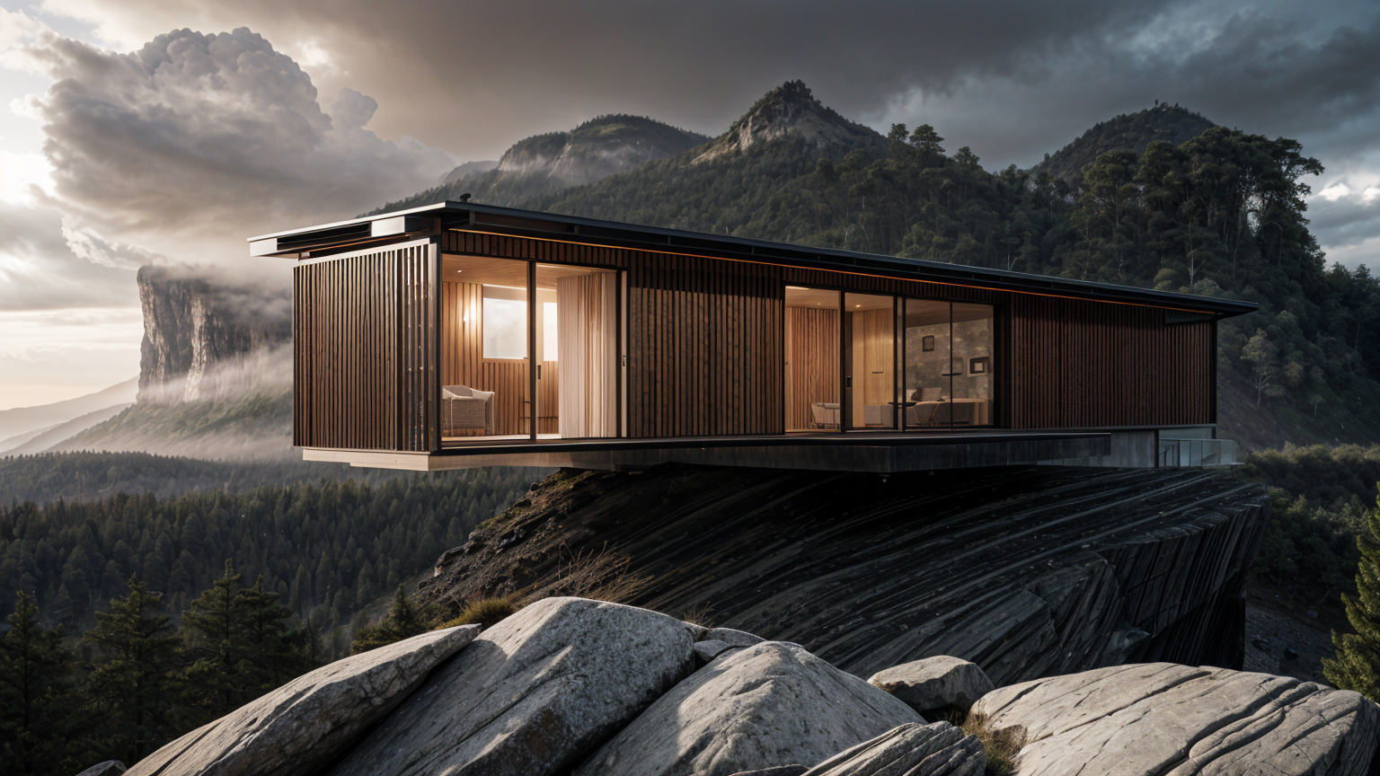 modernist interior shot coffee table in a lobby of a luxury hotel there is a bar in the back with many bottles at the back architecture