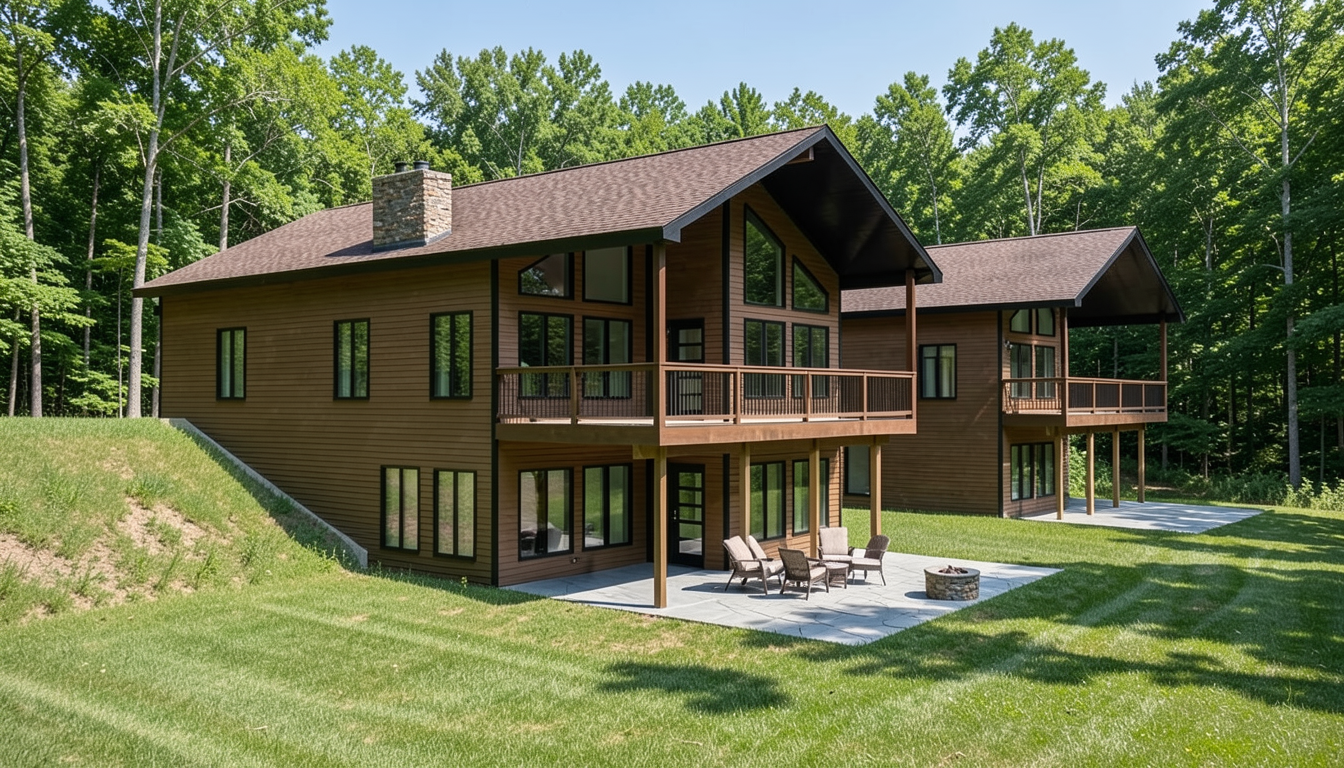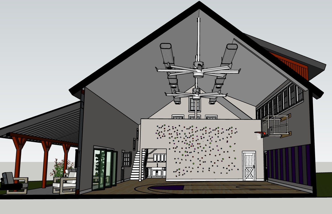 view is a section cut mainly focused on the interior the exterior background is trees maintain colors and make realistic