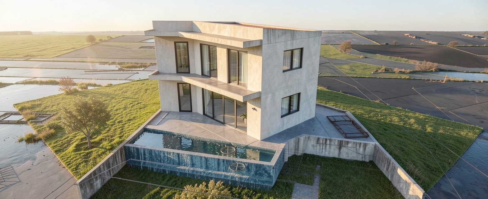 important preserve the existing geometry and the existing context exactly as provided preserve the existing windows do not add new windows do not modify alter reinterpret add remove scale or reshape any geometry do not change the site surroundings street layout neighboring buildings vegetation or context elements do not modify geometry scale proportions buildings road layout sidewalks or surrounding context in any way do not modify text soft sunny noon atmosphere diffused neutral natural daylight with subtle tones cinematic architectural mood weak interior lighting 4000k slight glowing from inside large glass surfaces with realistic reflections soft mirror effect environmental reflections of sky and surroundings important do not add new windows remove the people