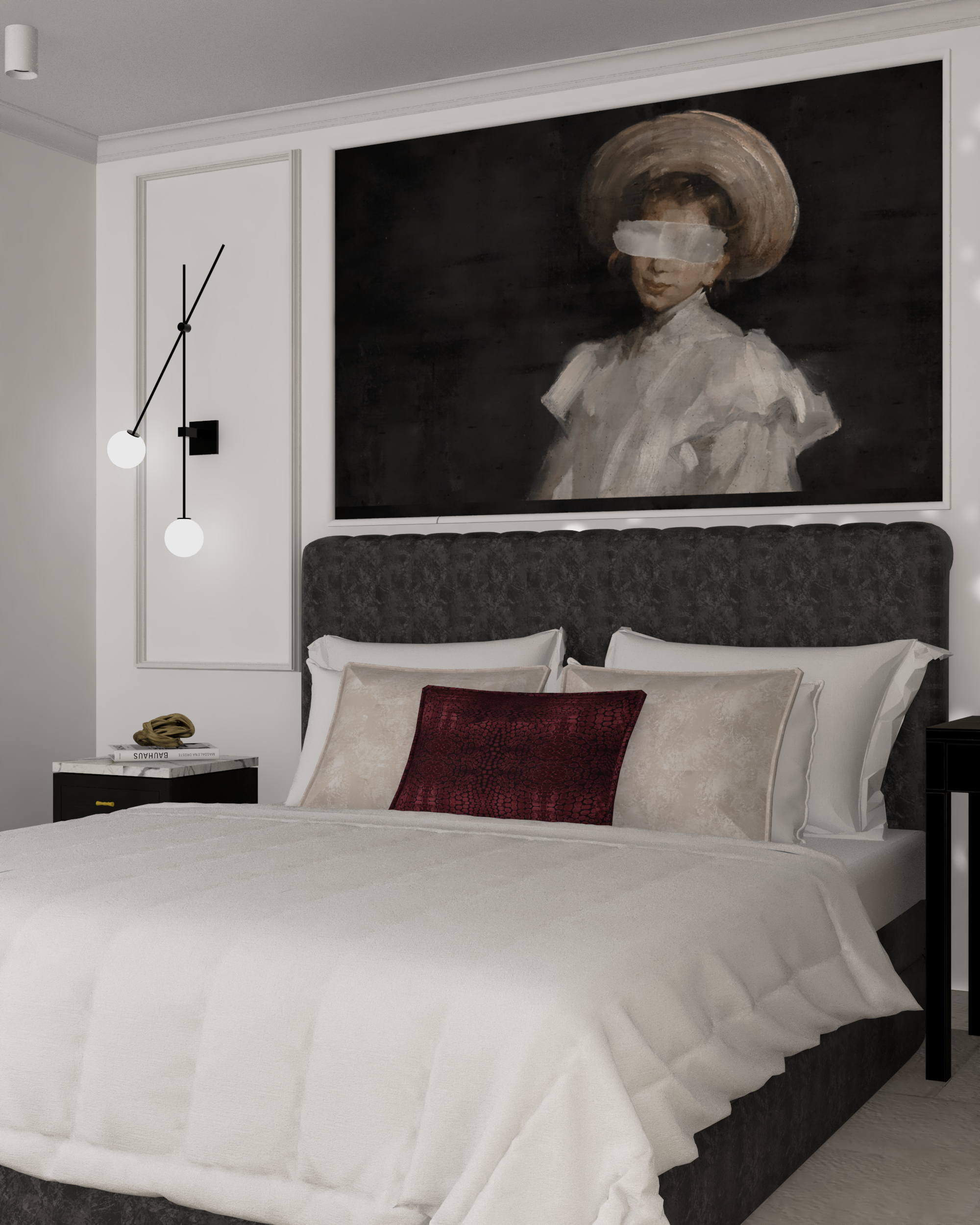 leave same colors but more realistic leave art above bed as it is