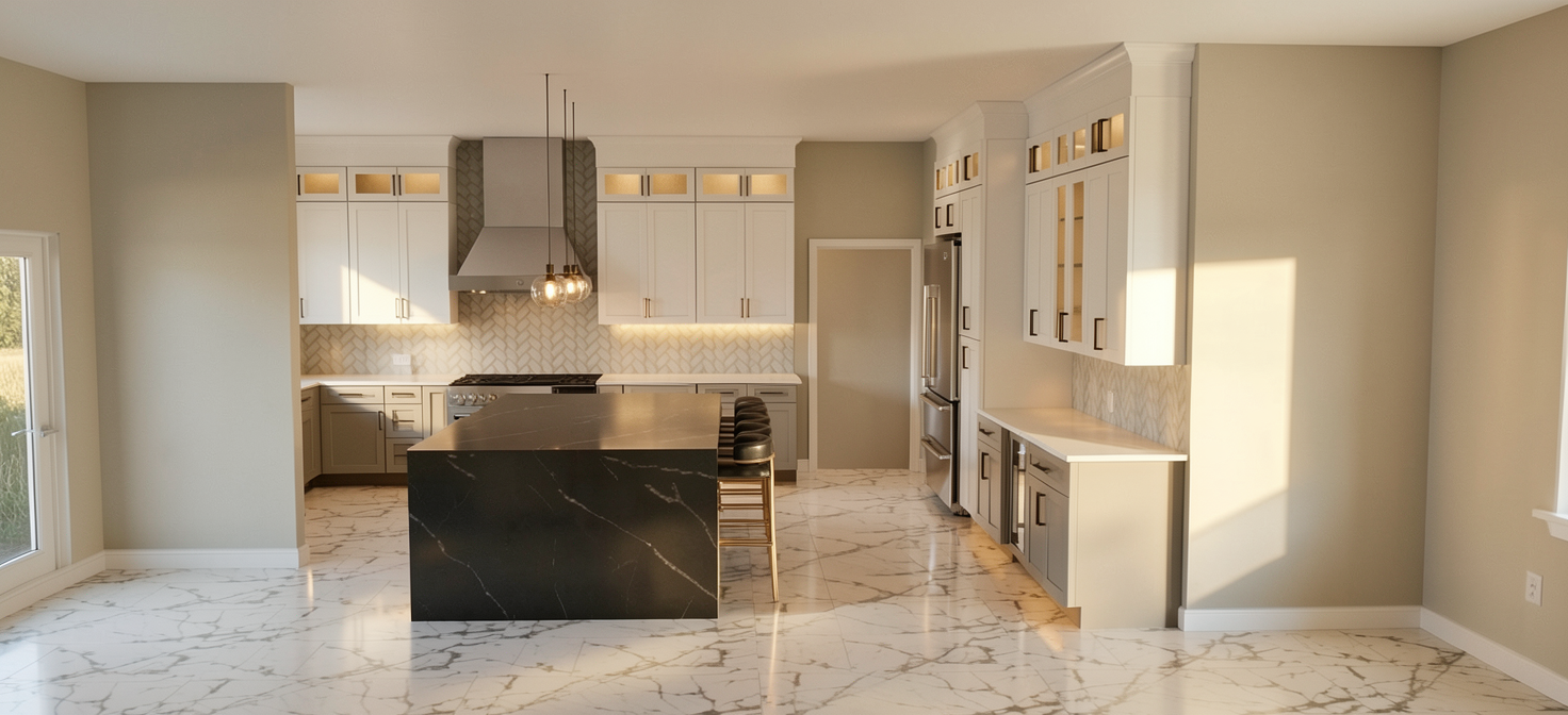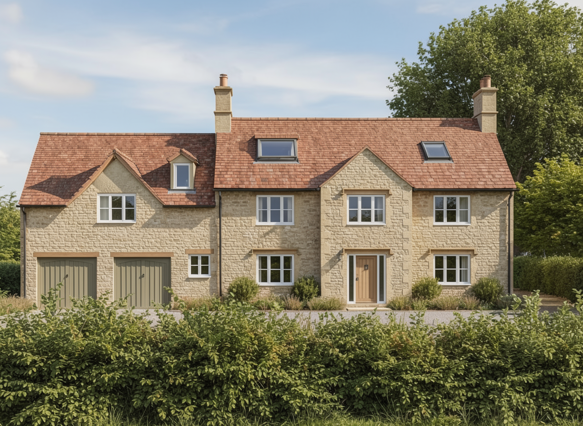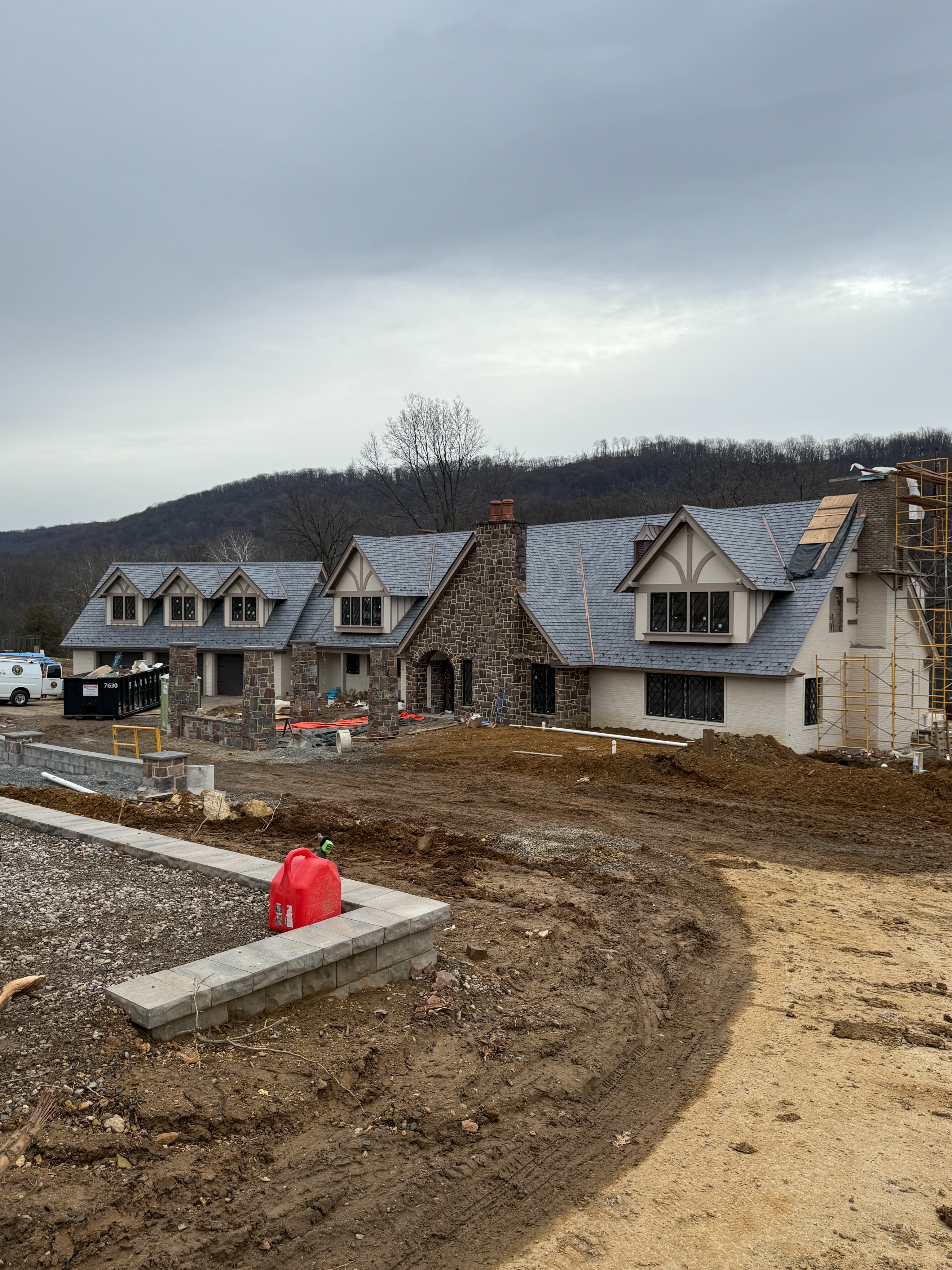 add a slate roof made from timbers over the 4 stone pillars making a car breezeway the third garage door all the way tot he left should be a garage door not stone keep everything else exactly the same