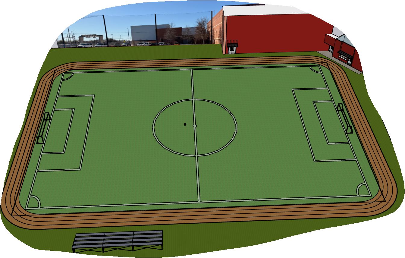 make the soccer field synthetic turf and the outside of the track nice real lawn looking the track is 4 lanes wide add a