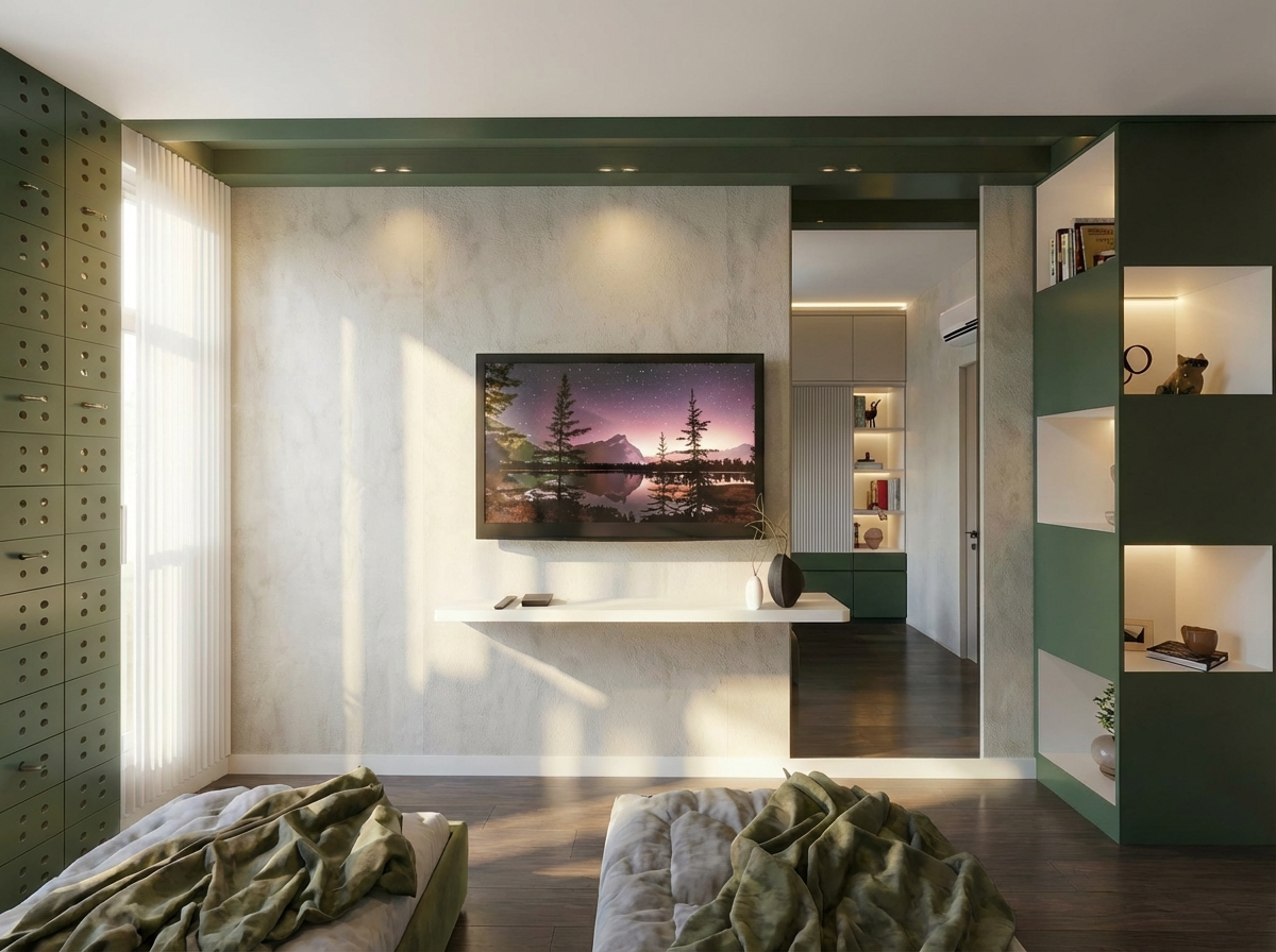 ensure no light or glow comes from the white furniture with horizontal slats remove any illumination from it no window