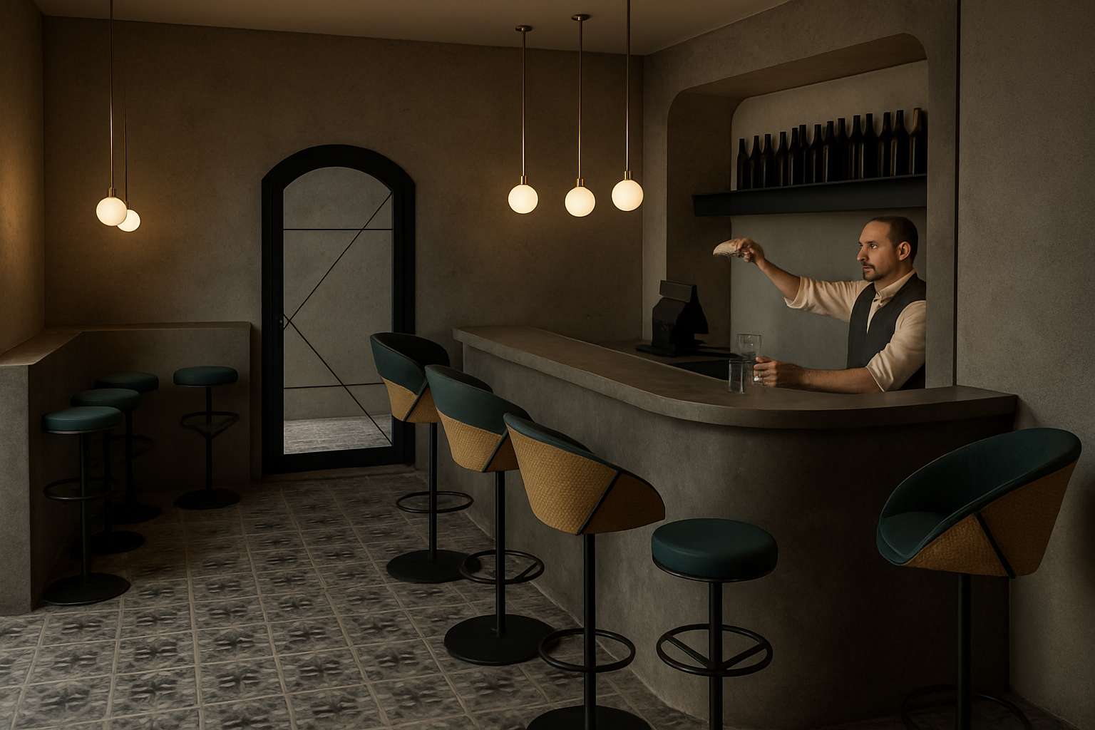 create a photorealistic render of this spacious bathroom with an overlooking mountain view to the left side is a mirror