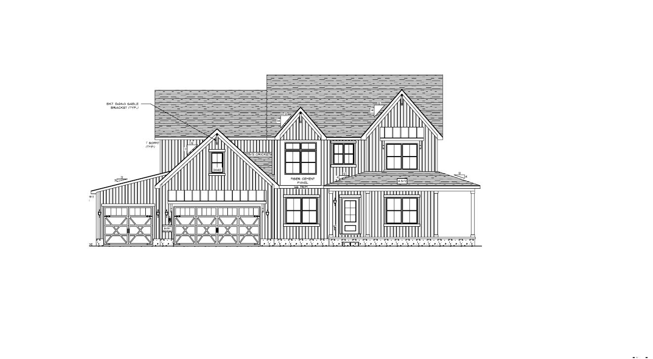 make as photorealistic as possible while keeping textures the same as selection professional landscaping in a lightly wooded scene with good lighting white siding black shingle roof black windows to match plan black front door the side porch is open no porch railing