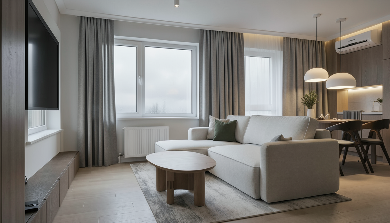 modern rocky mountain industrial architecture contemporary car wash building in bigfork montana architectural presentation rendering artistic but clear and readable not photorealistic single story building with strong horizontal forms and one tall vertical architectural blade element as the main focal point between office and self serve bays medium gray standing seam metal roof weathered steel vertical blade feature ground face brown cmu veneer at automatic bay walls vertical galvalume metal panels above automatic bay entry doors opaque glazed overhead doors with black aluminum frames horizontal metal cladding at self serve bay walls and office areas vertical corrugated metal panels above self serve bays with building lettering clear january morning in bigfork montana crisp blue sky cold clean air subtle frost long soft winter shadows eye level architectural perspective with strong foreground paving leading toward the building clean composition clear material separation strong architectural silhouette presentation style architectural visualization calm refined and professional the blade extends to the rear of the building it should have a warm weathered vertical corrugated metal no rust