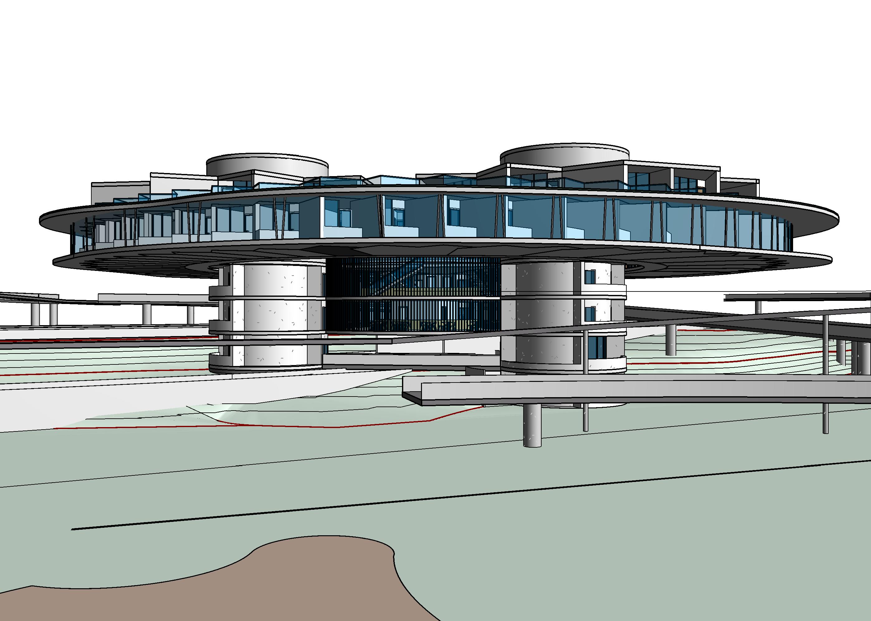 add trees in the green areas and people playing in the meadow also make light come out from inside the building