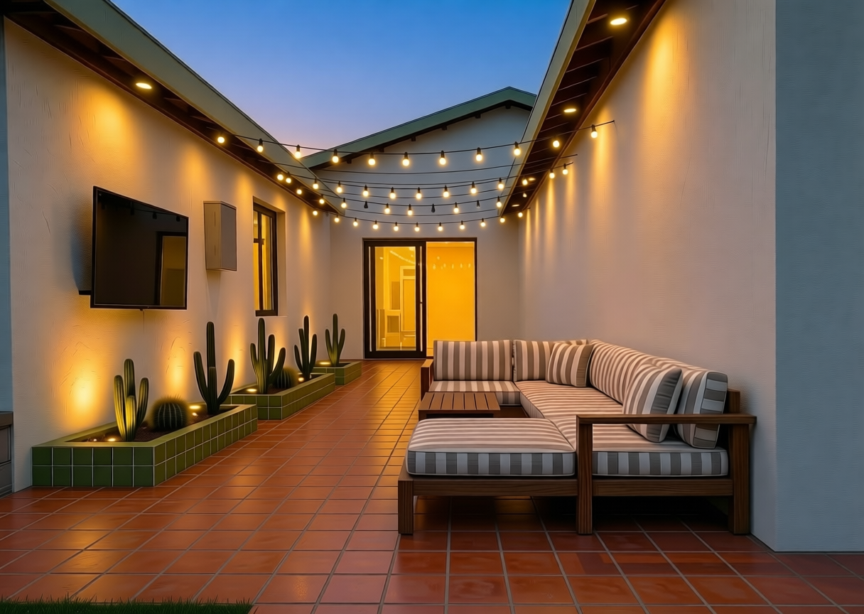 add a black outdoor sconce on left of slider