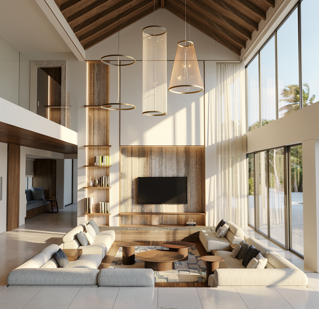 keep the architecture the same keep all the stone change the building paint colors to make it look neutral but modern add hints of blue and light orange give it a coastal california refresh