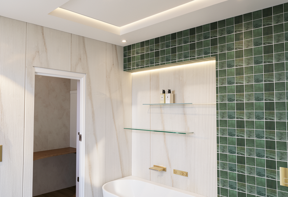 exterior shot render a modern cozy interior living space featuring a white couch against a light gray wall add a soft beige armchair with a charcoal gray pillow accent the room with round coffee tables in light oak with a smooth finish the kitchen area in the background should have sleek white cabinets and a black countertop incorporate large windows with natural sunlight streaming in casting gentle shadows on the polished light wooden floor create a calm and inviting atmosphere with warm ambient lighting and subtle accents of greenery in the corners keep the position on the sofa and coach as in the original position