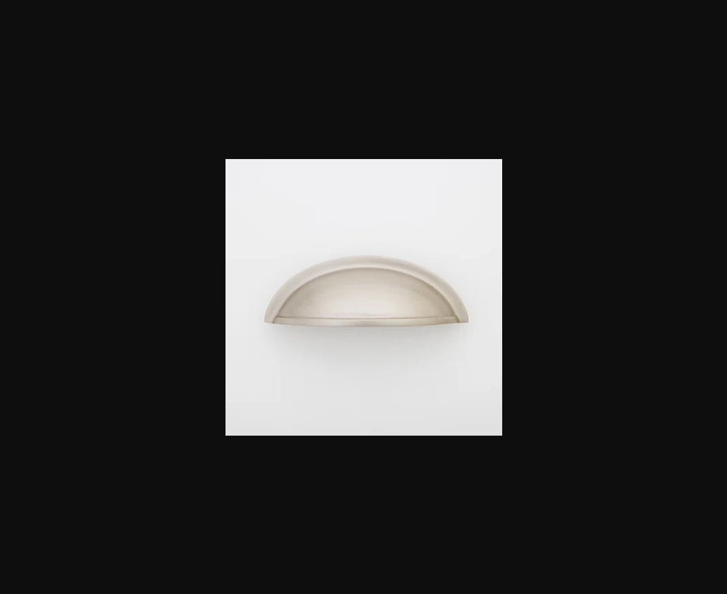 clean modern white kitchen with bright white shaker cabinets and brushed nickel cup pull hardware this brushed nickel shell cup pull installed on kitchen drawer fronts white subway tile backsplash with dark grout marble countertops brushed nickel fixtures light oak wood floors crisp clean modern transitional kitchen design bright airy photography