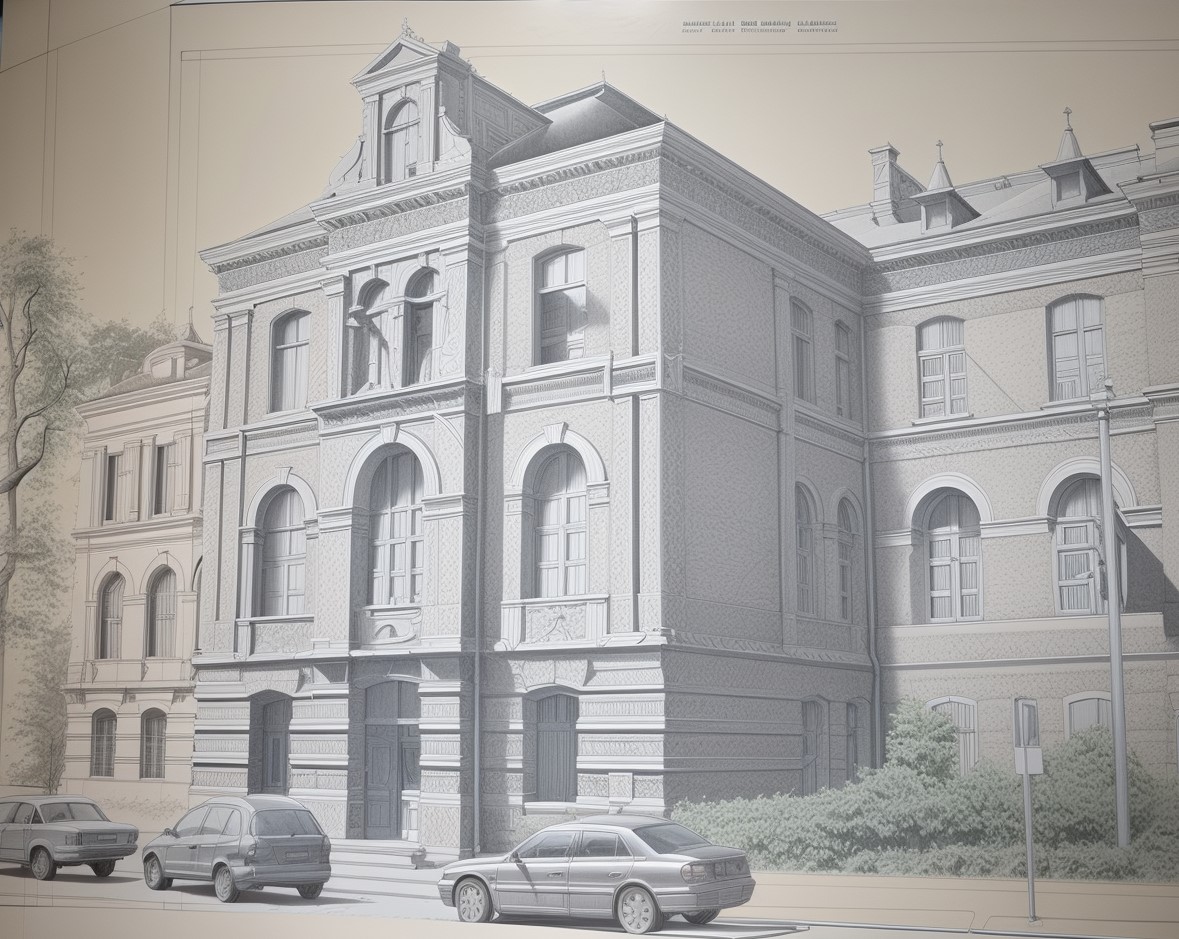 high quality detailed sketch hand drawing drawing simplification reducement of unimportant only main forms cartoon style bright remake black and white only drawing architecture