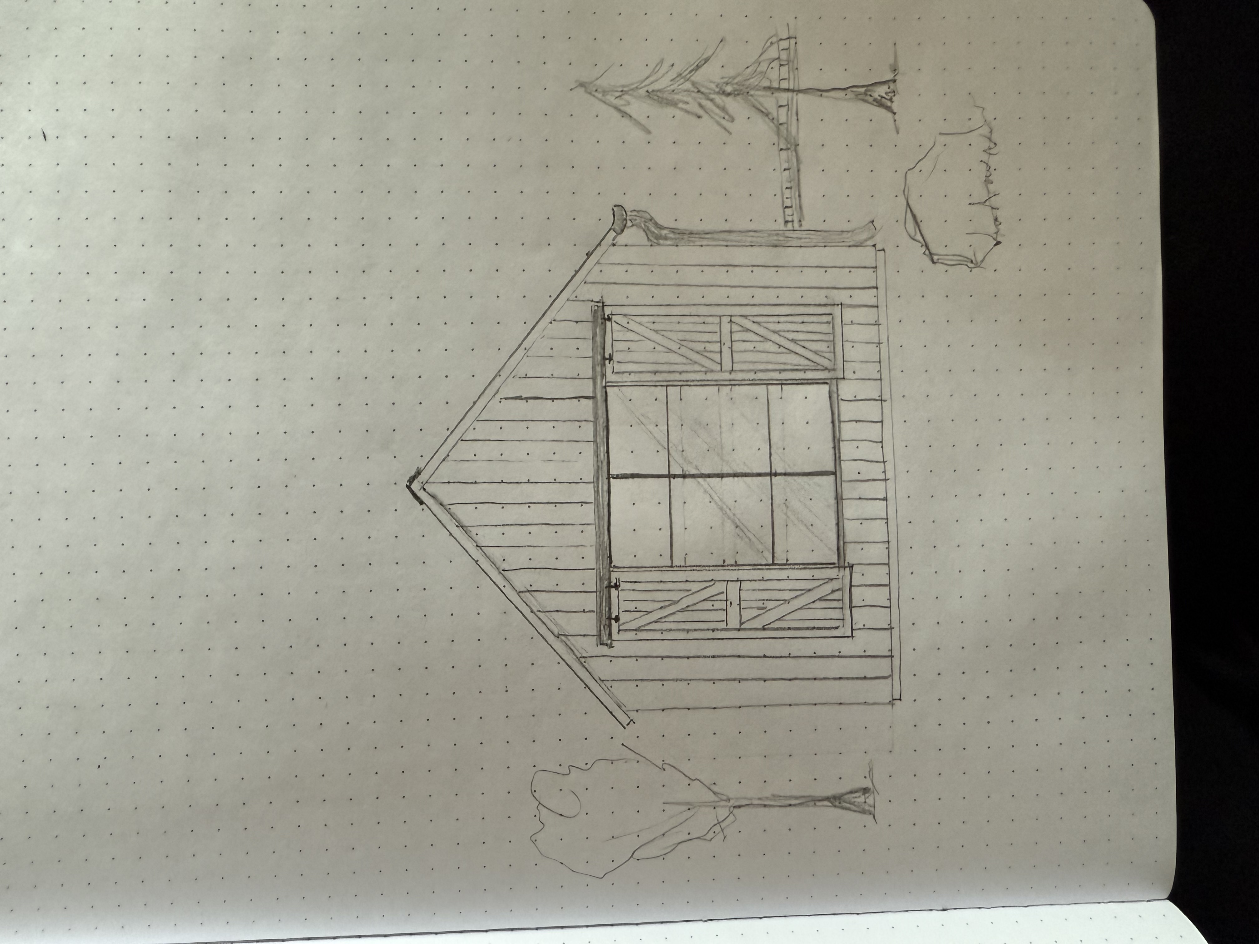 make this photorealistic park city natural landscaping board walk to the side of the house black european rain gutter on the right side of house wood planks for the siding 4k resolution keep the design the same as the sketch without making any structural changes 9 walls with 9 12 pitch roof moodier color tone on the wood siding black window frame and architectural metal plate for slider window covers