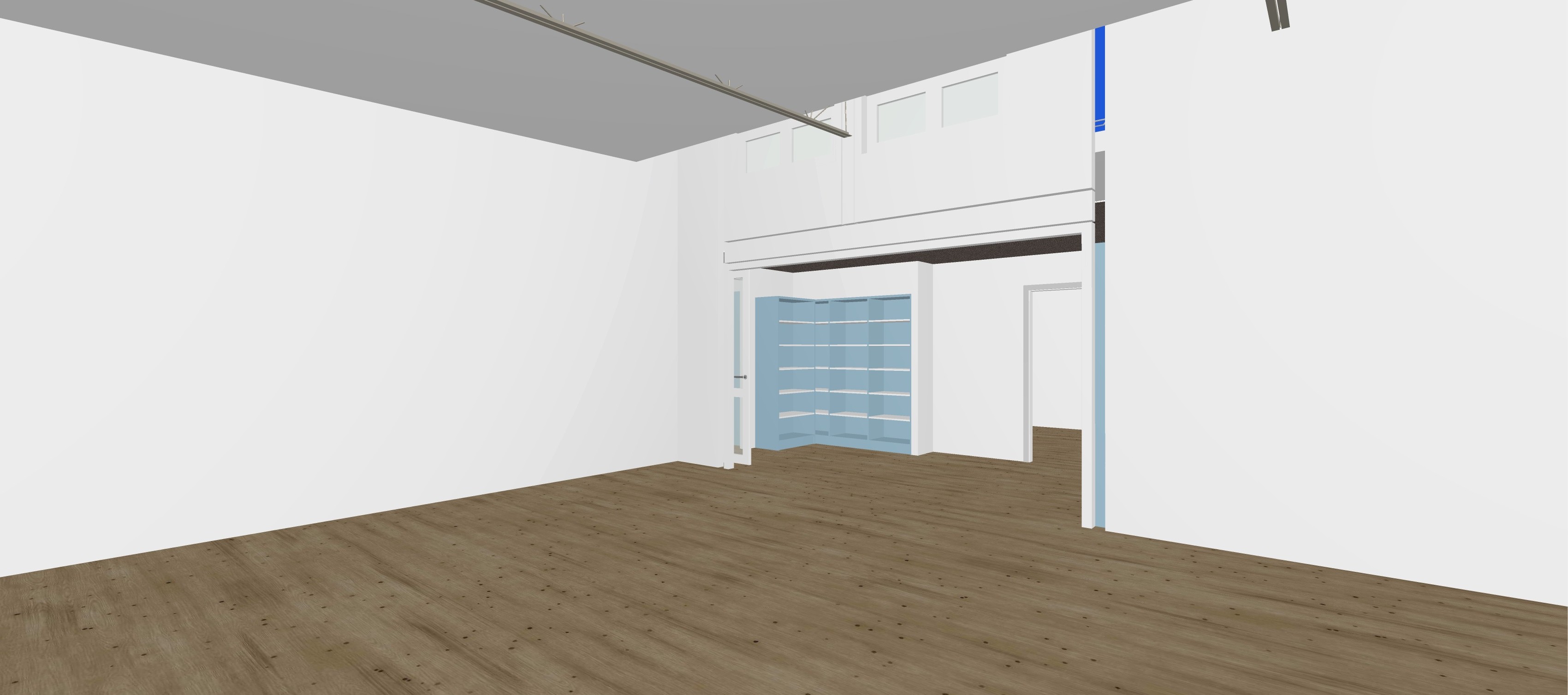 interior of high school classroom please fix gaps in walls show suspended grid ceiling tiles add desks etc