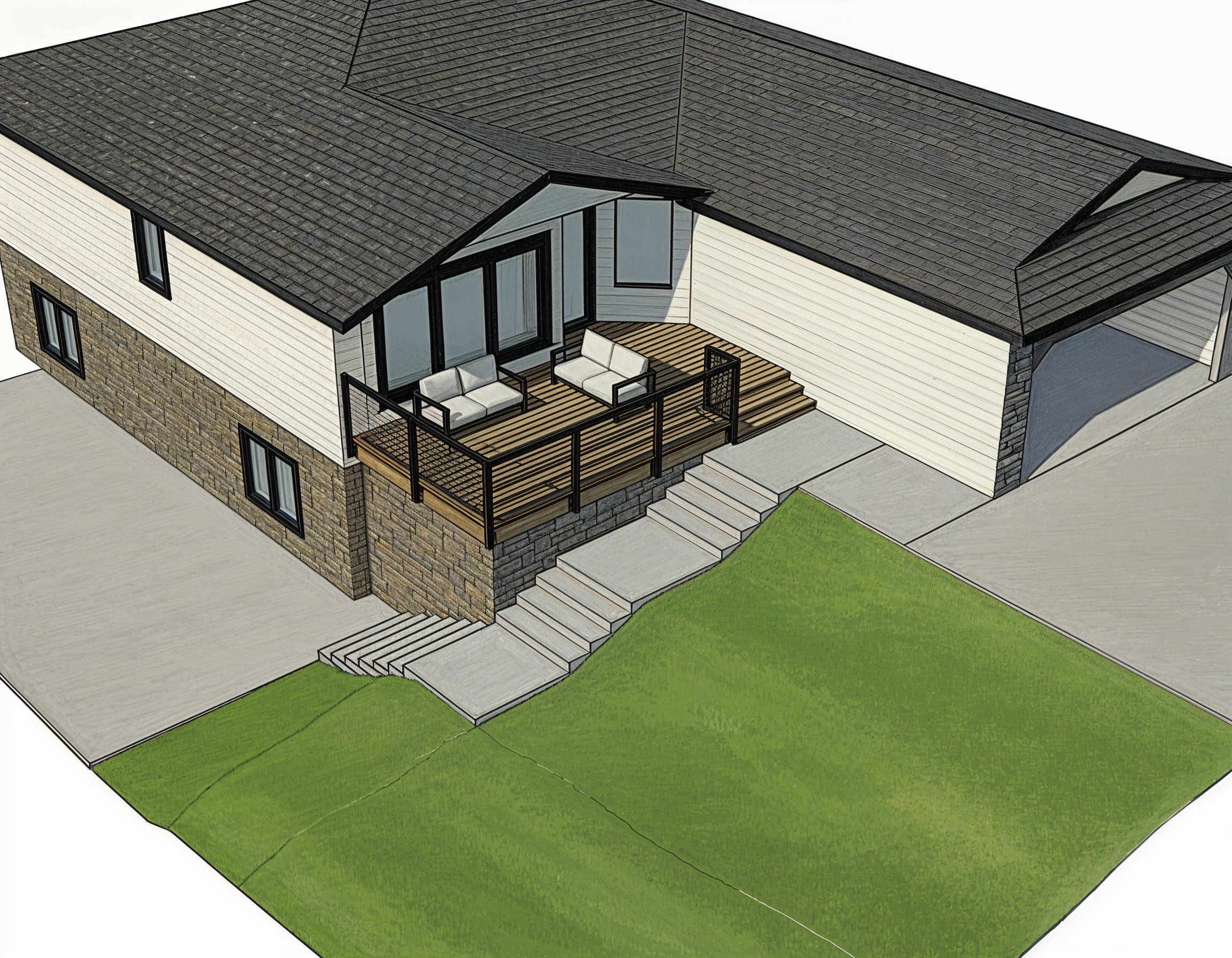 remove the stone from the front of the garage and make it the same vinyl siding