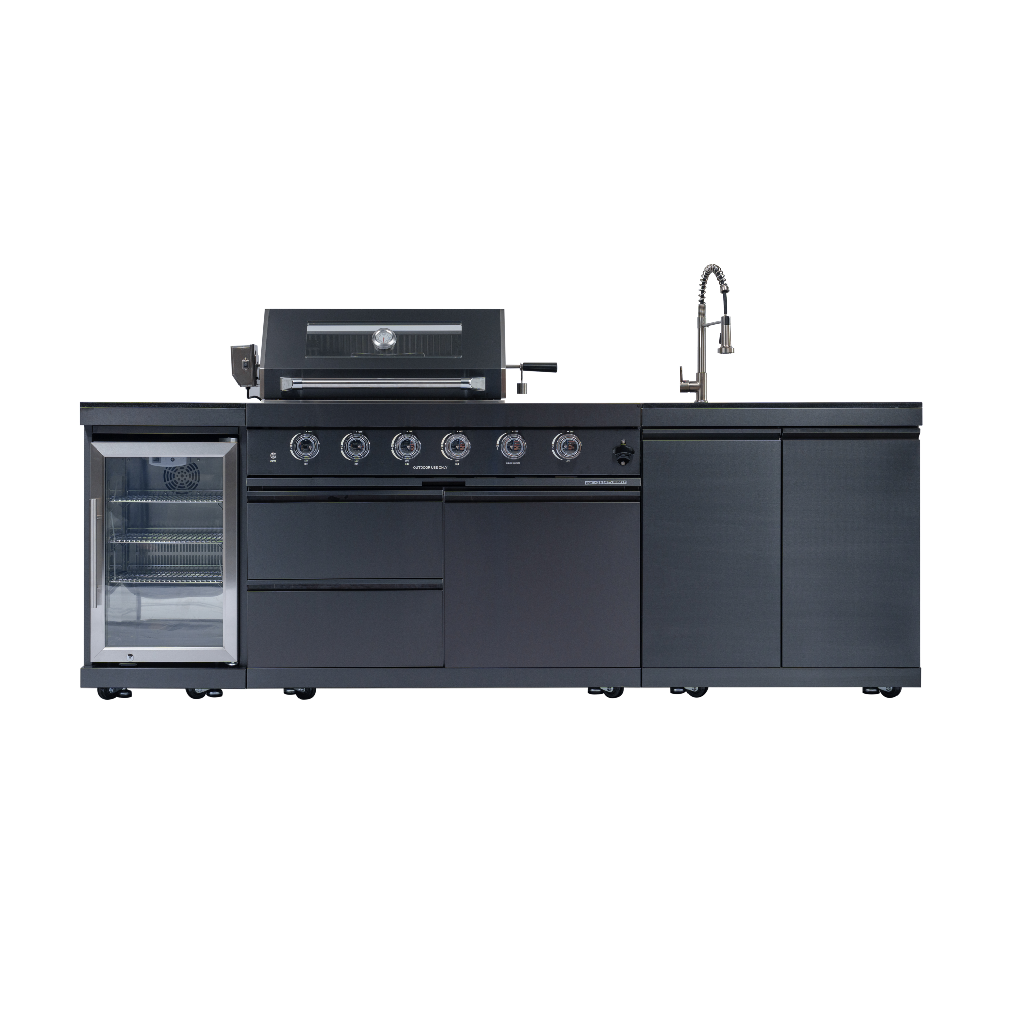 put this outdoor kitchen on a florida lanai with grey pavers and white stucco walls