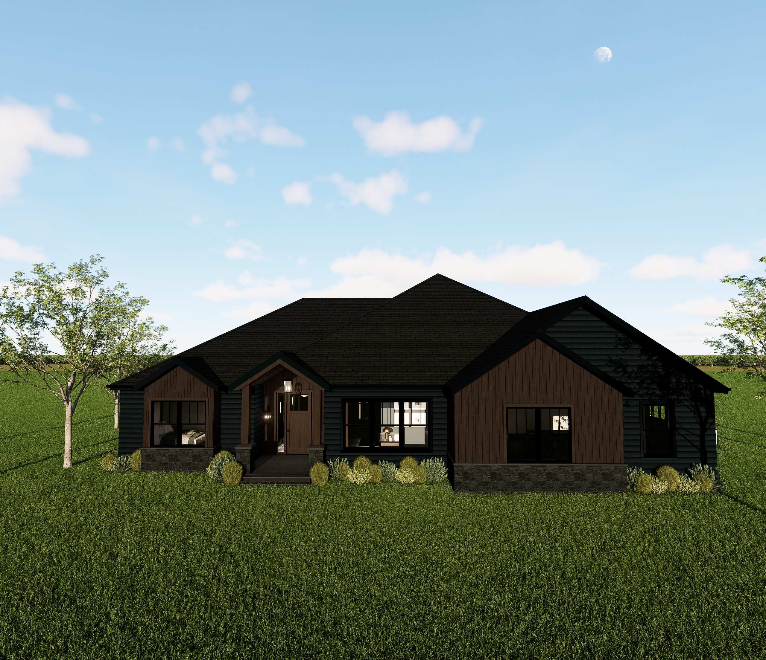 add in a driveway and paver walk way to the front door the horizontal sding on the house shold be a but more blue but still dark