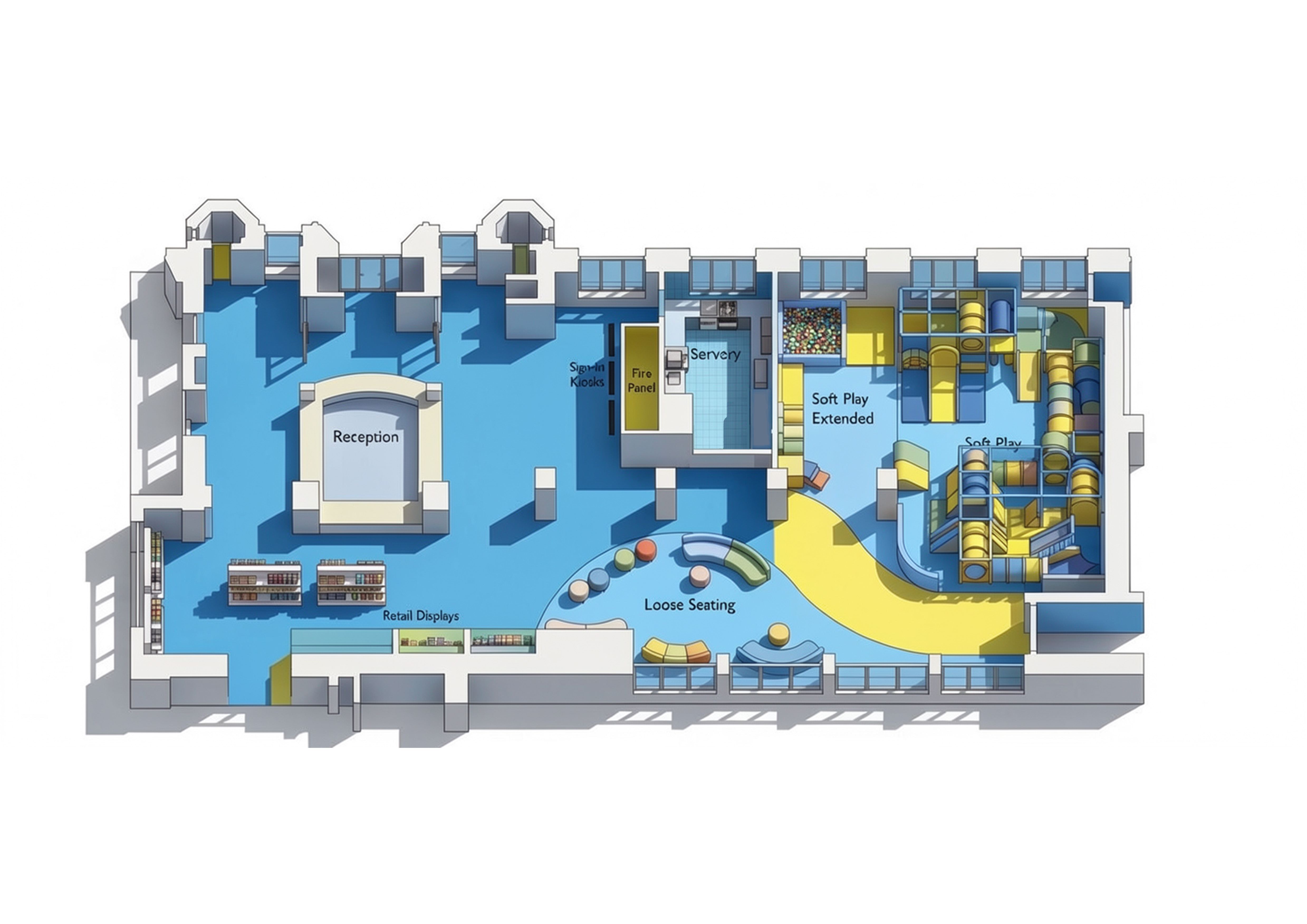 adjust the image to show less blue and yellow introduce more warm neutrals while maintaining hues of blue and yellow but less intense