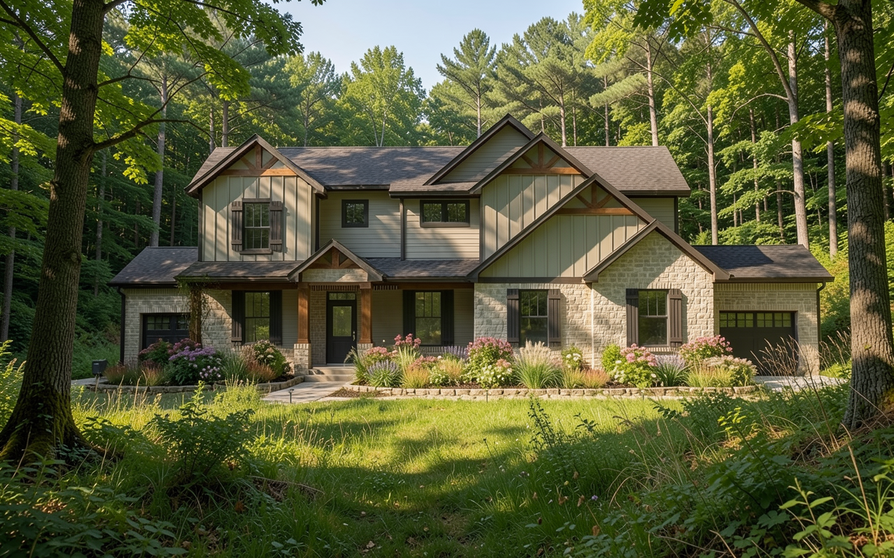 put this in a lightly wooded field that slopes down to the rear don t change anything on the house