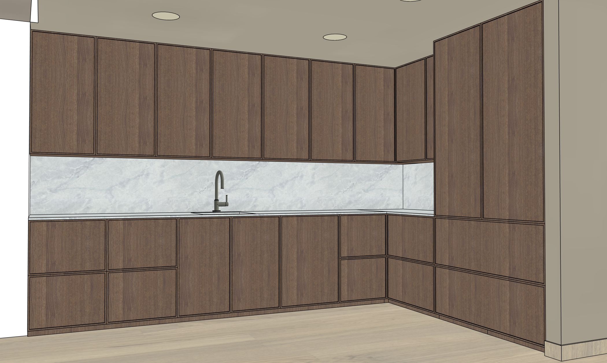 make floors wide plank white oak make the kitchen faucent gun metal finish make the kitchen backsplash matte finish