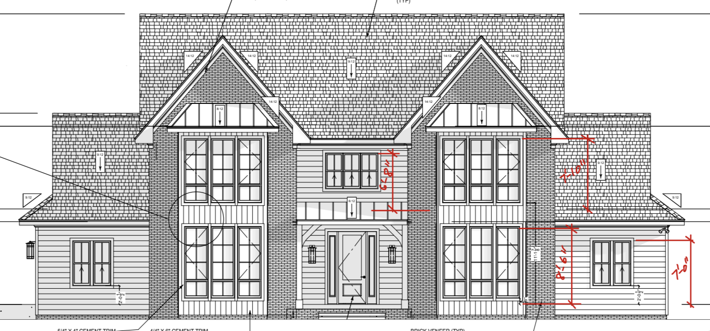 modernist exterior shot red brick black trim and windows white lap siding architecture