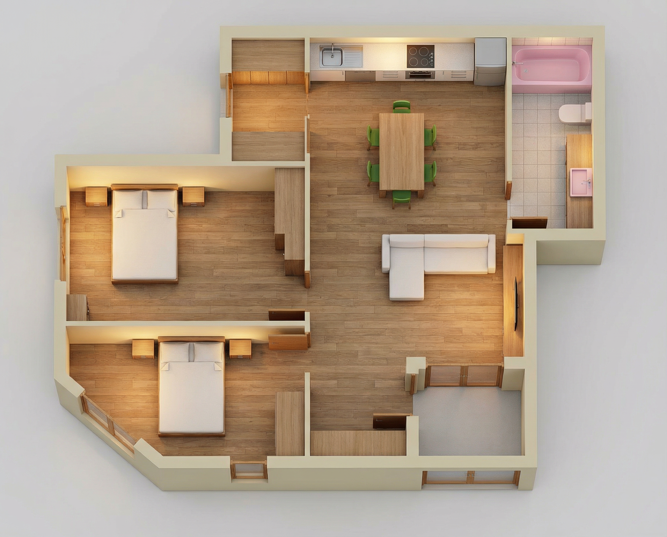 no daylight artificial lighting but bright and clear render maintain colours textures and proportions