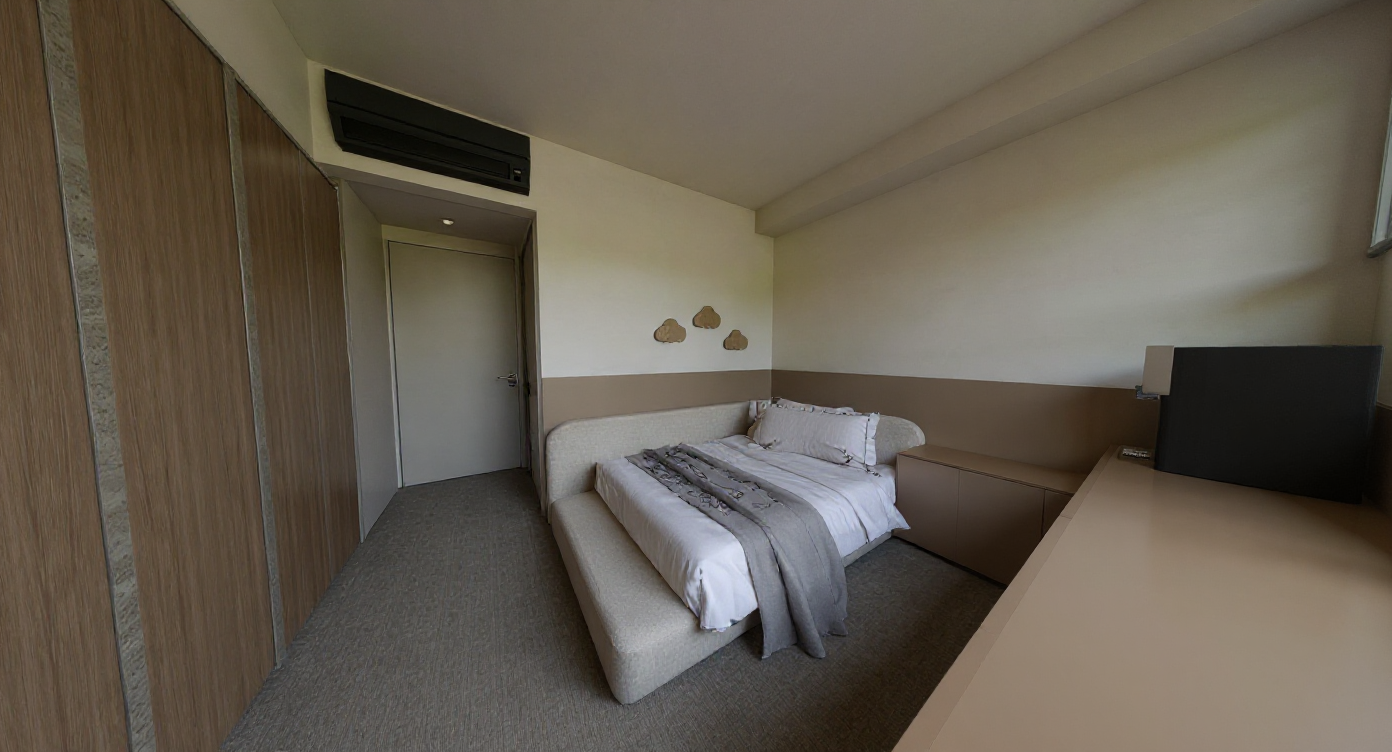 render this image in a realistic style maintaining the exact same composition furnishings and design without adding or removing elements
