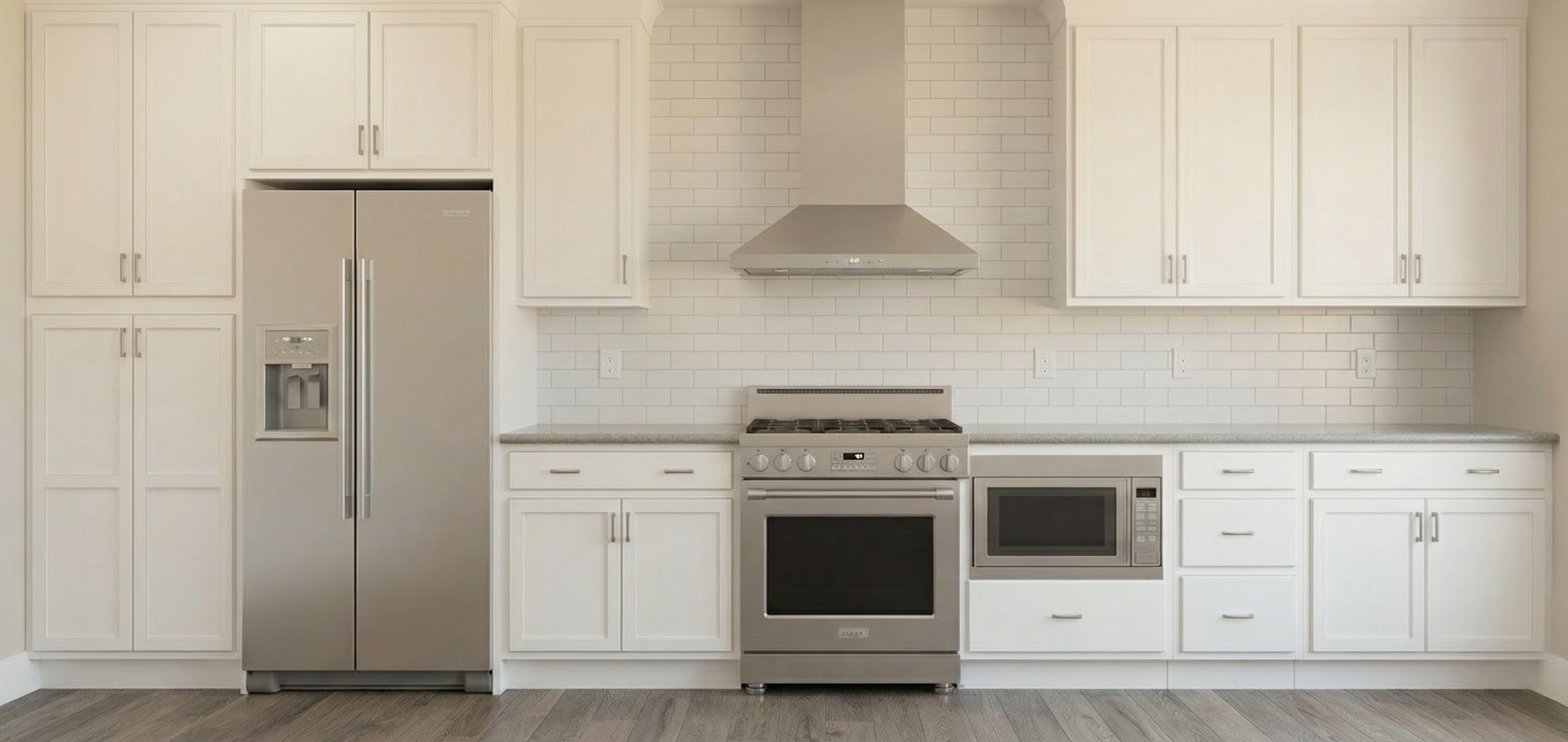 keep everything the same but stop the tile backsplash at the bottom of rangehood