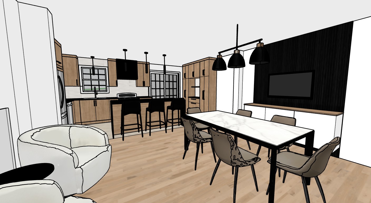 enhance this interior render to look more photorealistic do not modify the design layout furniture colors materials or textures keep all paint colors finishes and proportions exactly as shown do not replace or reinterpret any elements