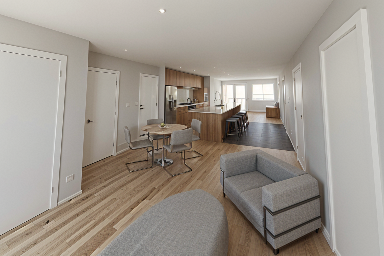 make realistic this is a living room with a cozy fireplace to match a house built in the 1700 s the wood is wide plank chest nut wood flooring
