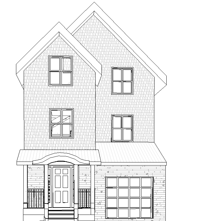 create a front elevation photorealistic image for this townhomes bay head shingle style in white with black accents window frames trimming and roof add some beach vibe elements
