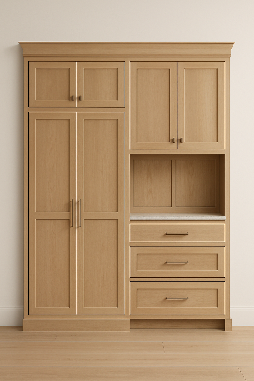 interior shot take this render and make a modern bungalow kitchen render use light wood cabinets and brass fixtures