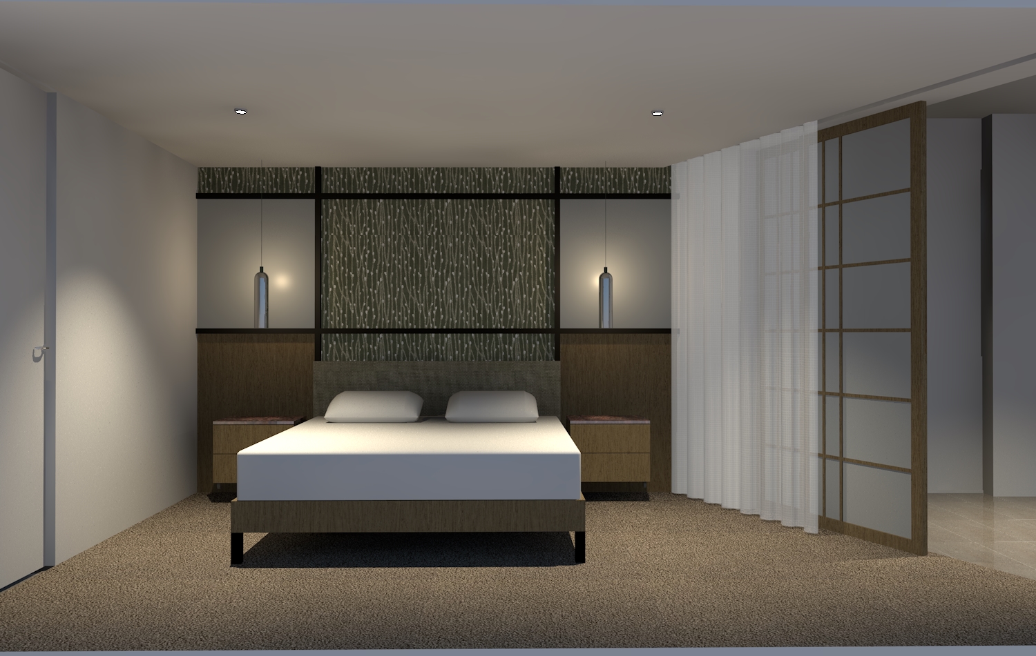 use exactly the same colors and textures a modern plush luxurious bed a medium sized modern abstract painting above bed