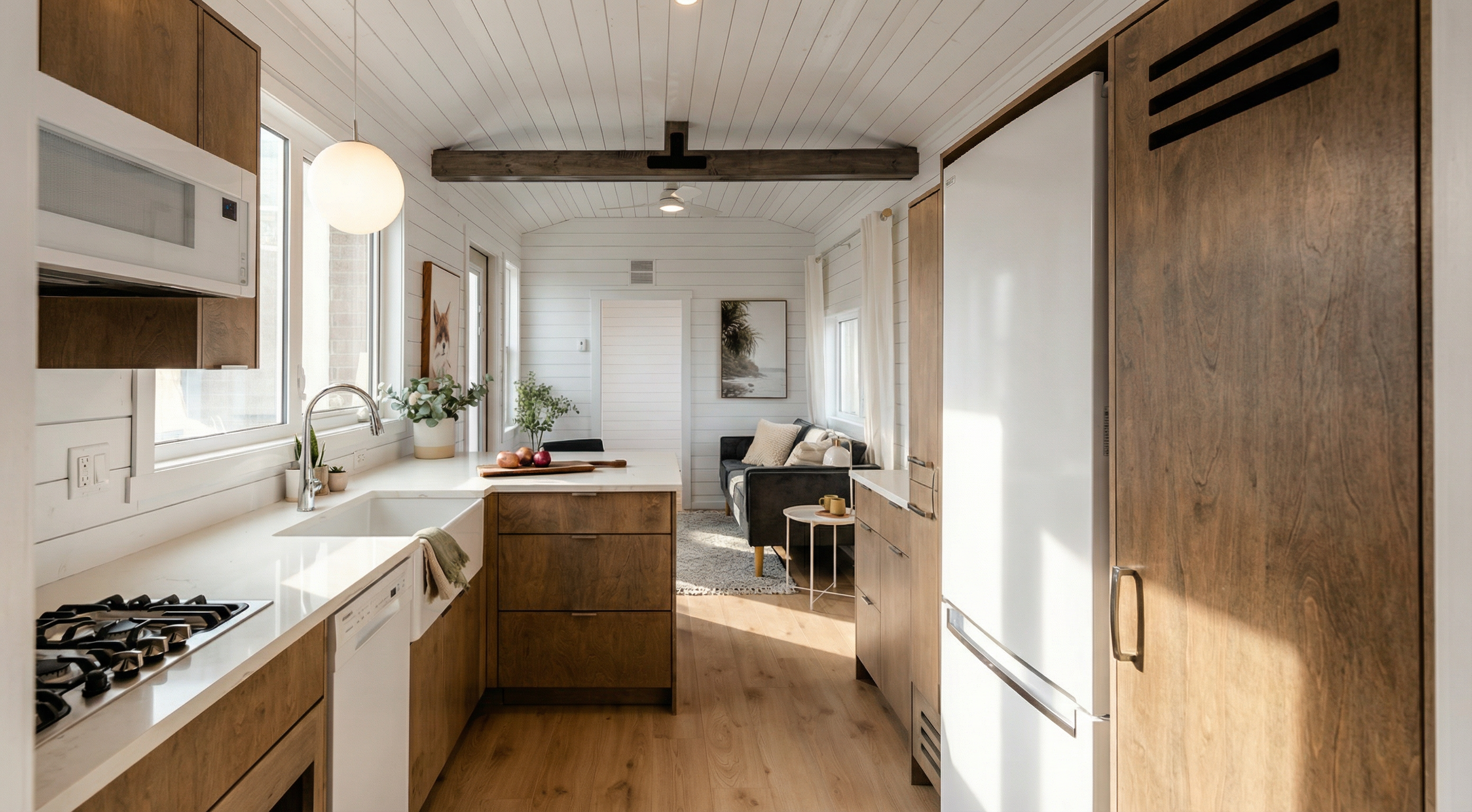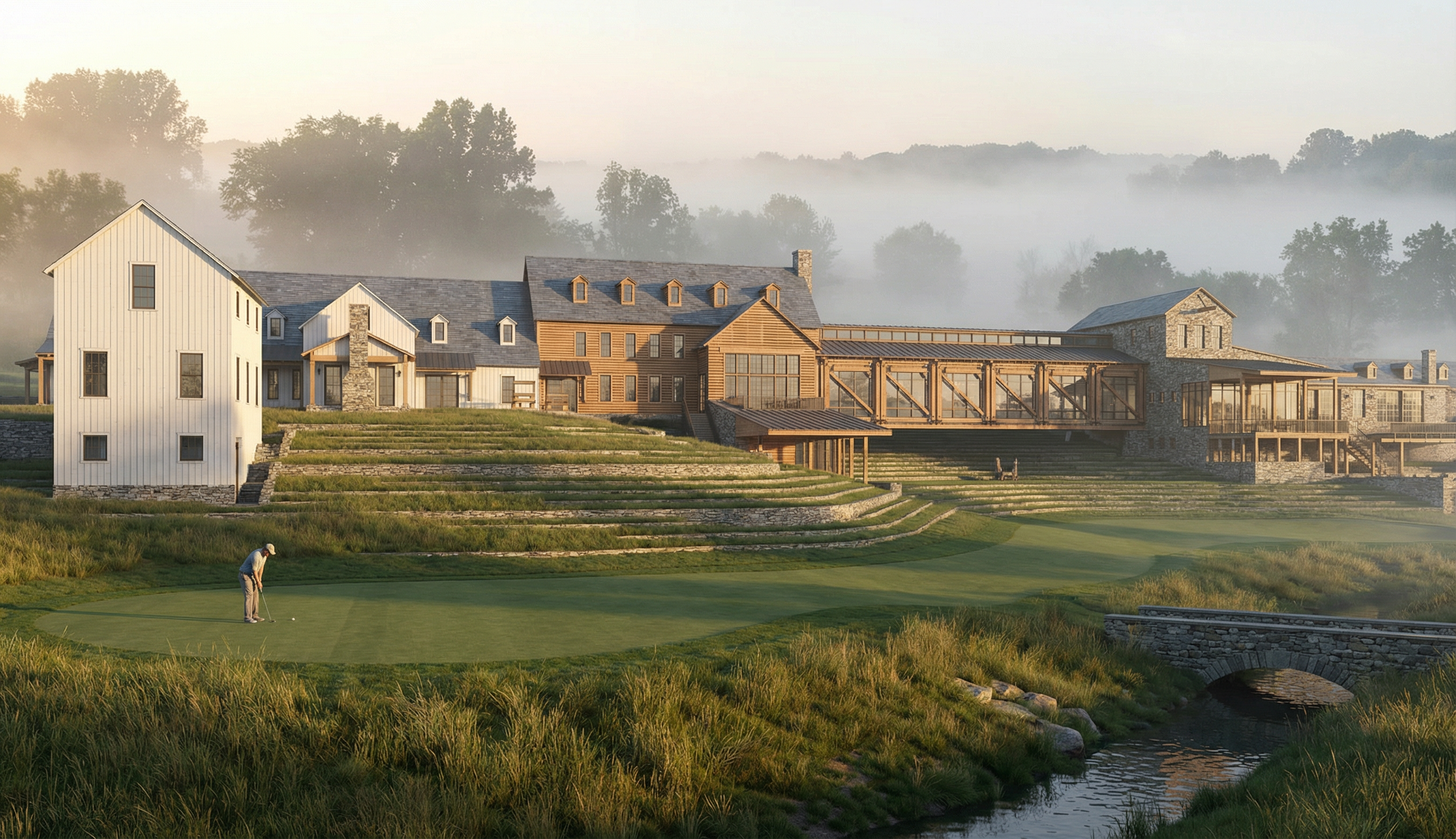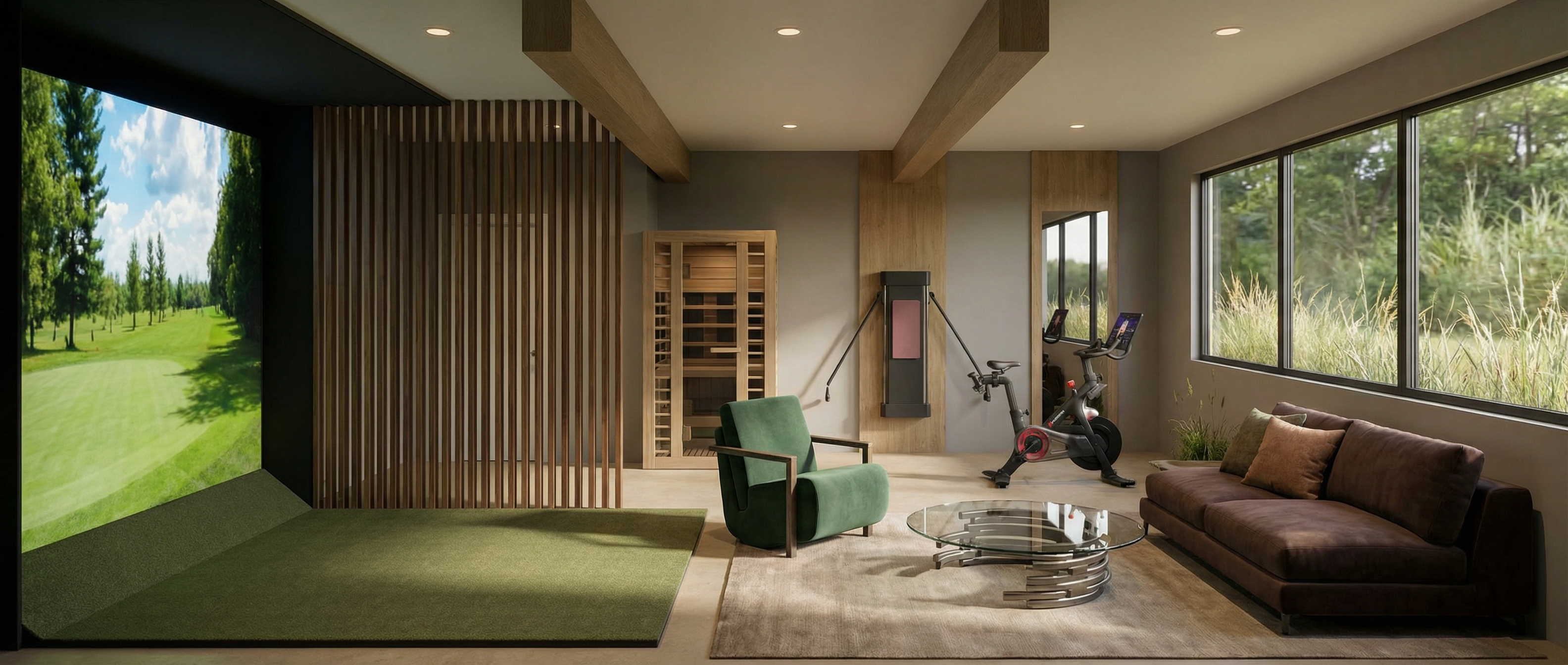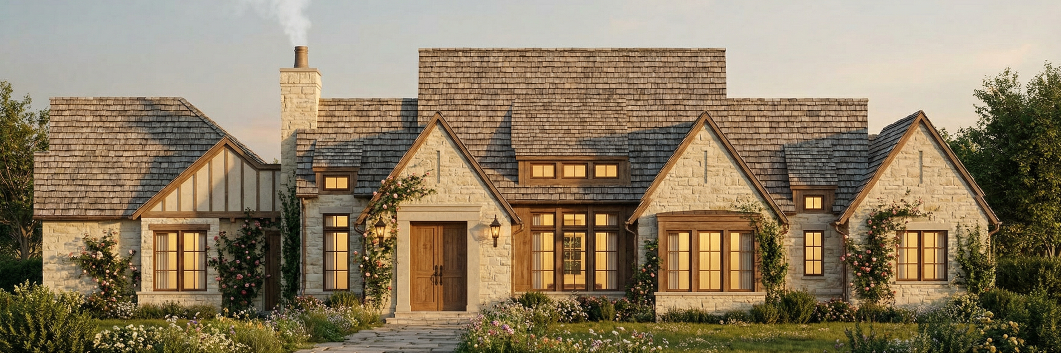 modernist exterior shot modern house front elevation main fa ade light gray precast stone side walls brick above the garage doors black porcelain on a sloped surface other black porcelain sections combined with wood tone fluted pvc panel canopy black steel with cedar underside matching panel tone black aluminum windows realistic lighting sunny with some clouds show neighboring houses architecture