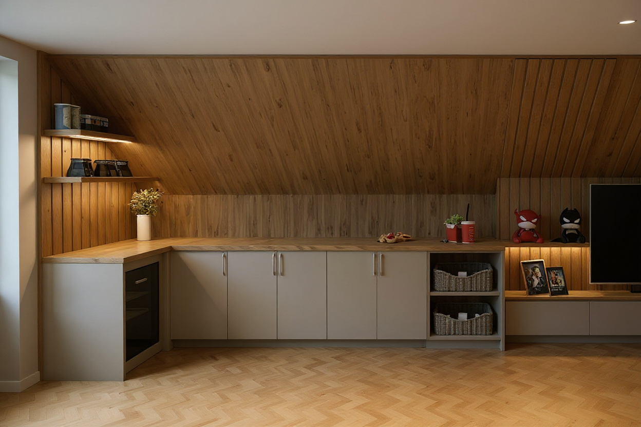 generate accurate 2d architectural elevations based on the provided interior render style clean architectural elevation drawing professional interior design documentation output requirements front elevation of the bedroom wall shown in the render bed wall orthographic view no perspective distortion correct proportions and alignment based on the render clearly show upholstered bed and headboard continuous wood wall panel behind the bed integrated led strip above the headboard two pendant lights aligned symmetrically above bedside tables bedside tables simple cylindrical form electrical points and reading lights integrated into the panel simplified geometry suitable for construction drawings no textures no shadows neutral linework black or dark grey on white background consistent line weights minimal graphic style no people no decorative styling elements output as a clear elevation drawing suitable for interior design presentation and technical review