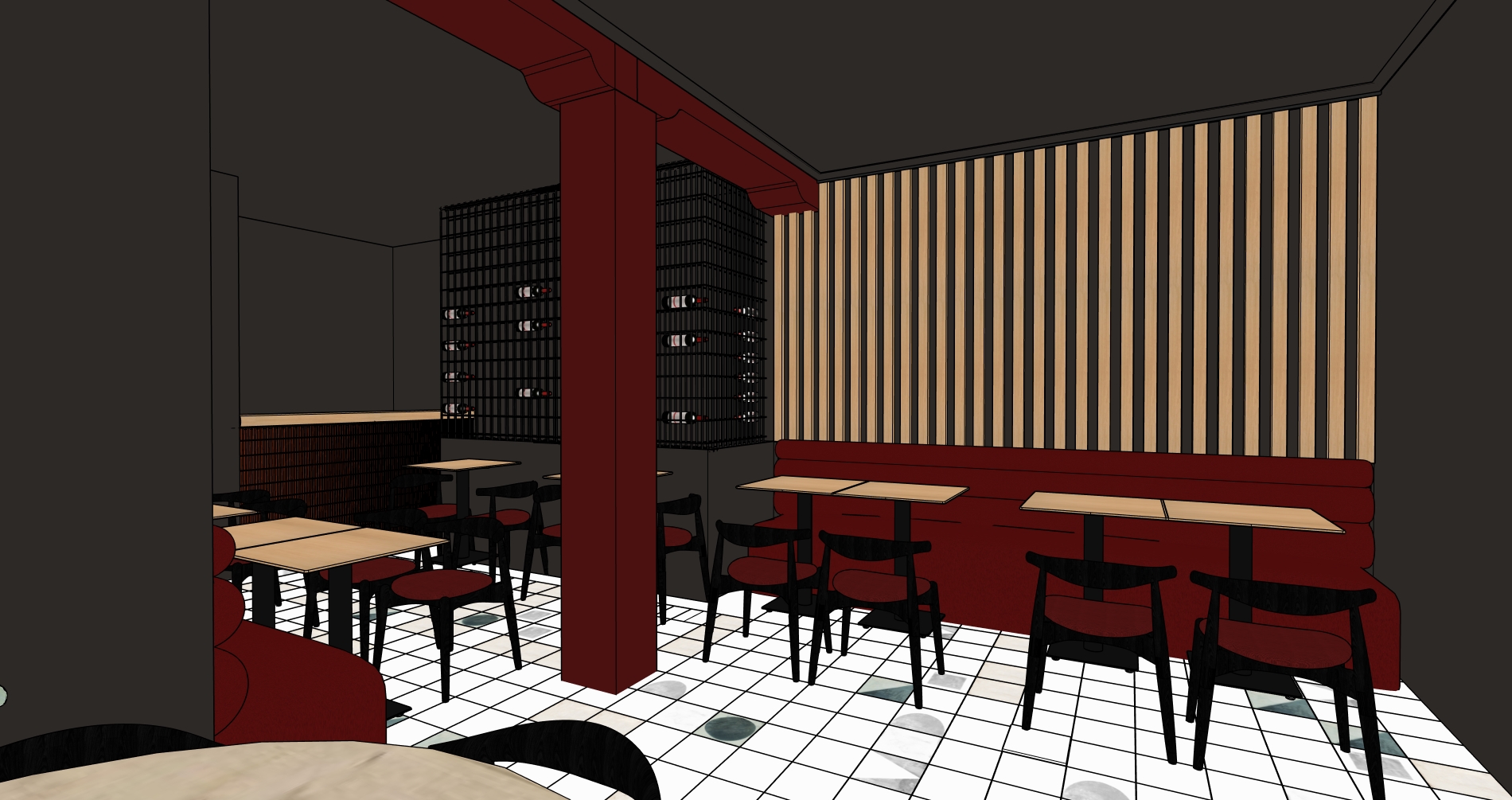 crea una imagen fotorealista a partir de esta de sketchup realza las texturas pero manten el ambiente igual el ambiente tiene que ser oscuro sin luz natural pon un tira led en el techo de la apred de palilleria