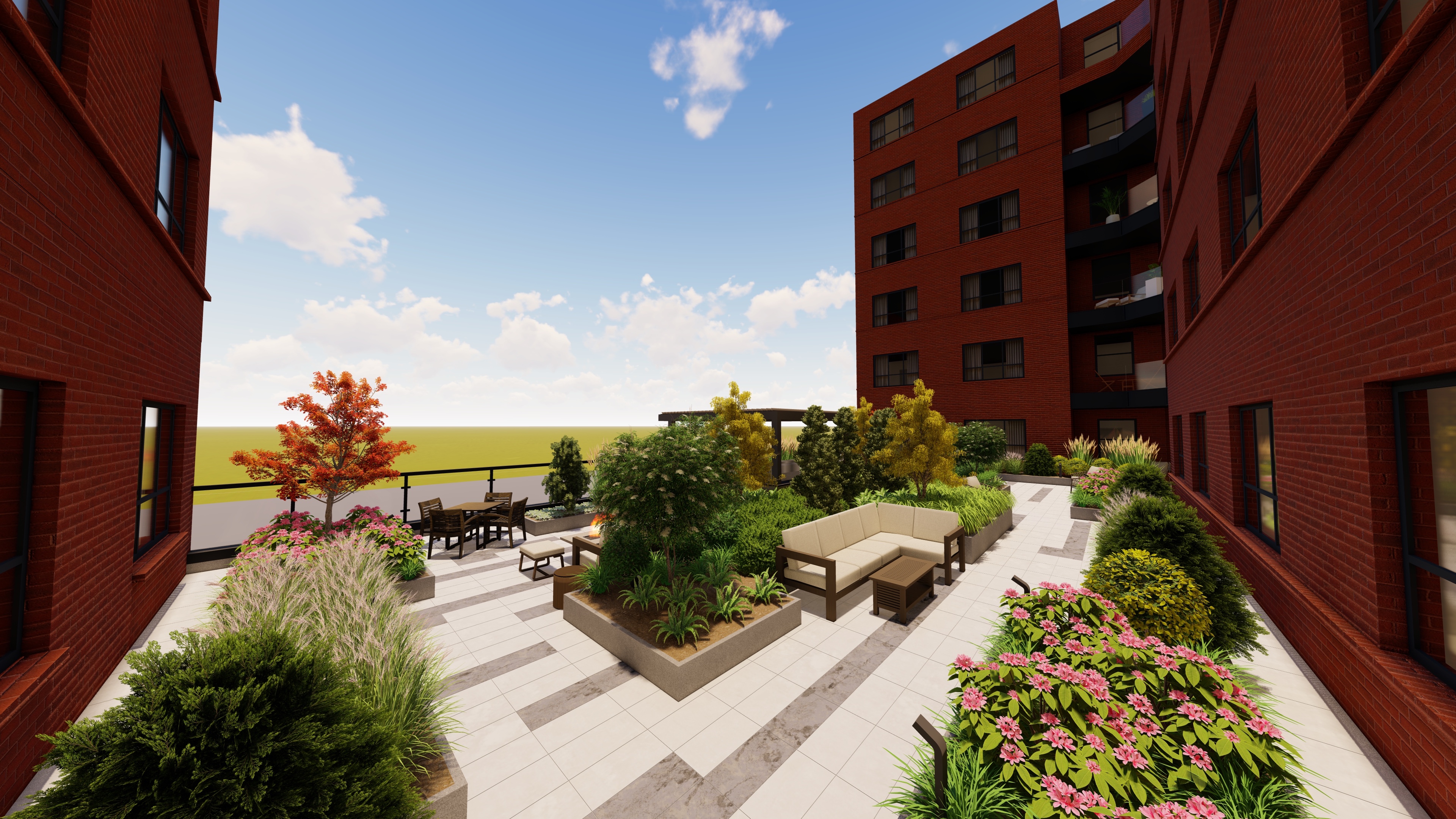 make a city scape in the background make more photo realistic materials without changing anything about the design