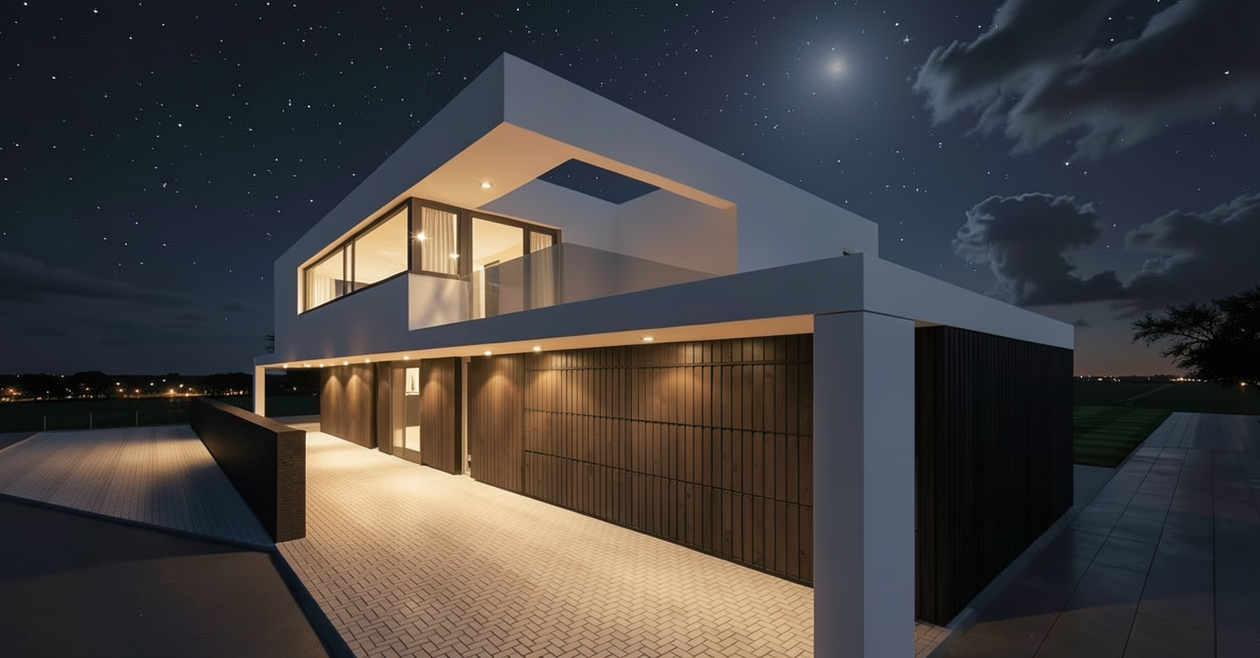 create a stunning architectural visualization of a classic house with a tudor style design the roof is covered in dark slate gray tiles the windows feature black frames with clear glass adding a touch of modern elegance the exterior doors are black same the windows with decorative iron handles surround the house with a lush green manicured lawn and vibrant flower beds featuring colorful blooms reds yellows and purples add a clear blue sky for a serene atmosphere and warm golden sunlight casting gentle shadows on the facade the walls to the right past the front door have depth look at the elevation and match the depth its close but really pay attention to the details add a walk path down the middle leading to the door as for as the material there is a mix of metal and slate roof look at the elevation the chimney toppers are supposed to be metal and look at the brick and stone differences in the drawing you can tell what is stone vs brick the stone berkshire rubble from solstice stone and the brick should be birch from the coastal series from h c muddox lets take this one wall at a time we need this to be perfect the window at the end is a rv garage door change that and make the wall a smooth stucco some of the blank walls in the elevations are stucco look at the plan the blank white walls are stucco make a path instead of just the grass and plants and make the garage door solid with windows on the top only not fully see through next is that window next to the garage it needs to be a that s a brick wall with a brick header make the brick needs to be a tan almost its too red the wall to the left of that the two pitched roofs one is smooth stucco he one behind it needs to be fully stucco the one in the front with a smaller pitch needs to be brick now the wall with the window and the metal roof needs to have stone not just smooth stucco the front door area looks great dont change it the wall behind the front door is stone make the change the window next to the front door is flush with the wall get rid of that roof you added to it and make it flush with the new stone wall and the walls to the far left need to have depth and look at the material some is smooth stucco other is stone you need to pay attention and change that that short wall you have with all stone is a pony wall fix that with stucco it goes in front of the wall with the metal roof and that fireplace doesnt go into the wall its apart of a courtyard area so thats where the depth comes from