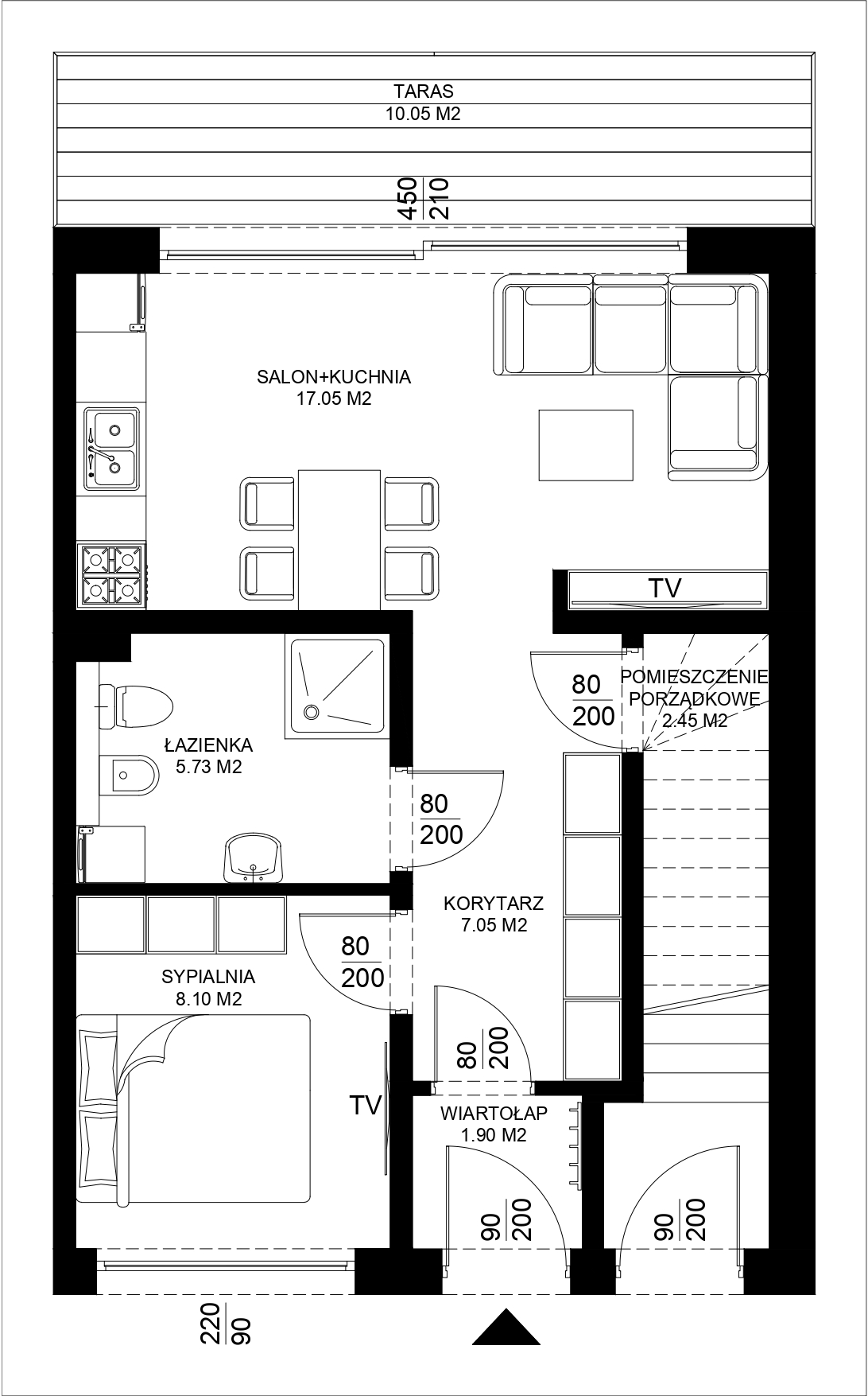 convert this floor plan into a realistic isometric 3d view of a full house show the space from an elevated angle with furniture walls and details visible the cleaning room is under the stairs that lead to the first floor loft style do not change the arrangement of walls and furniture use the same furniture as shows on the plan do not change the orientation of the floorplan