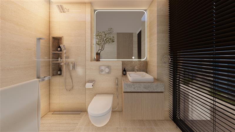 do not modify the proportions of the fixtures natural light coming in beyond the window on the right casting shadows from the blinds