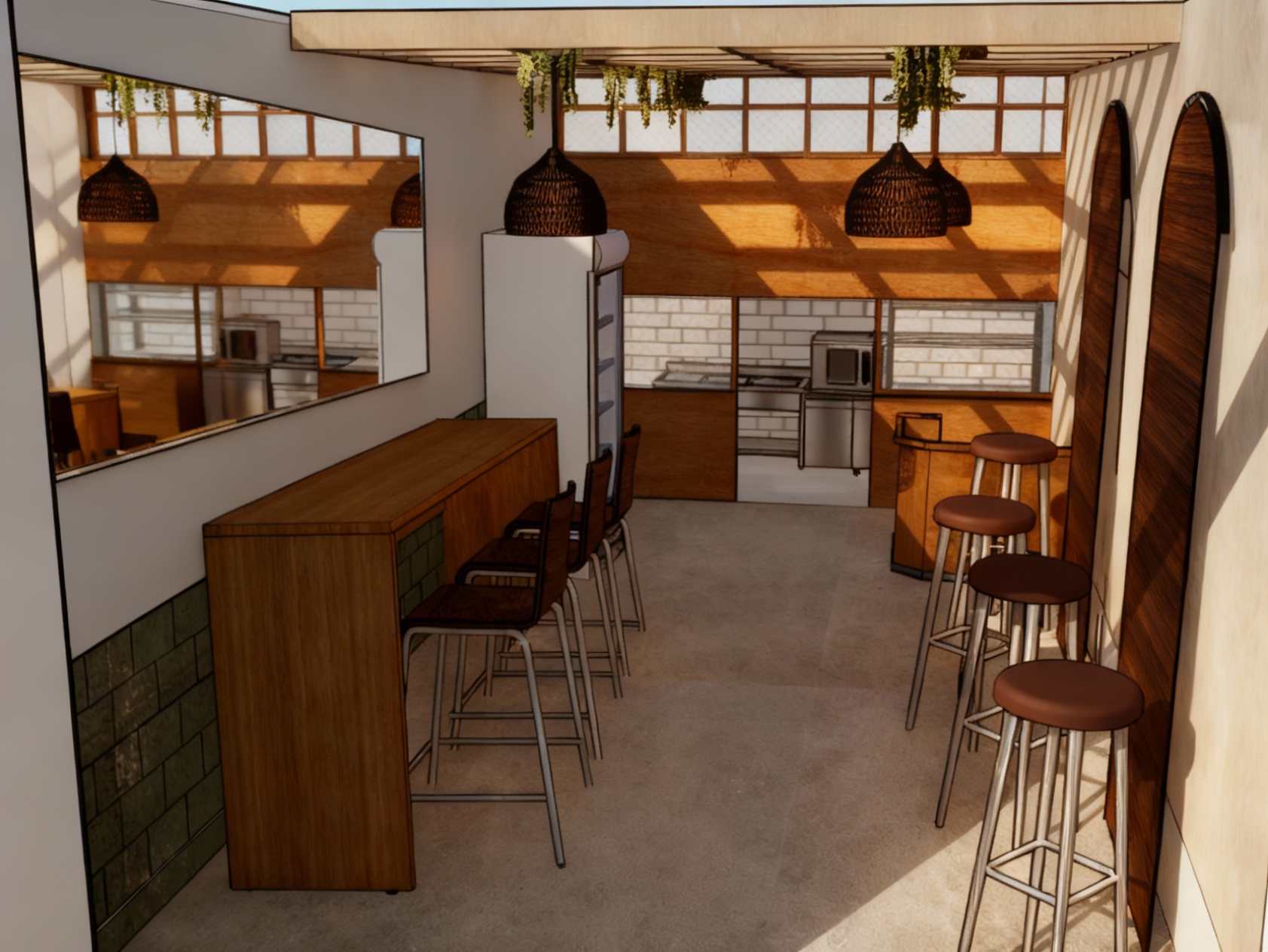 exterior shot make this sketch into a realistic modern rendering